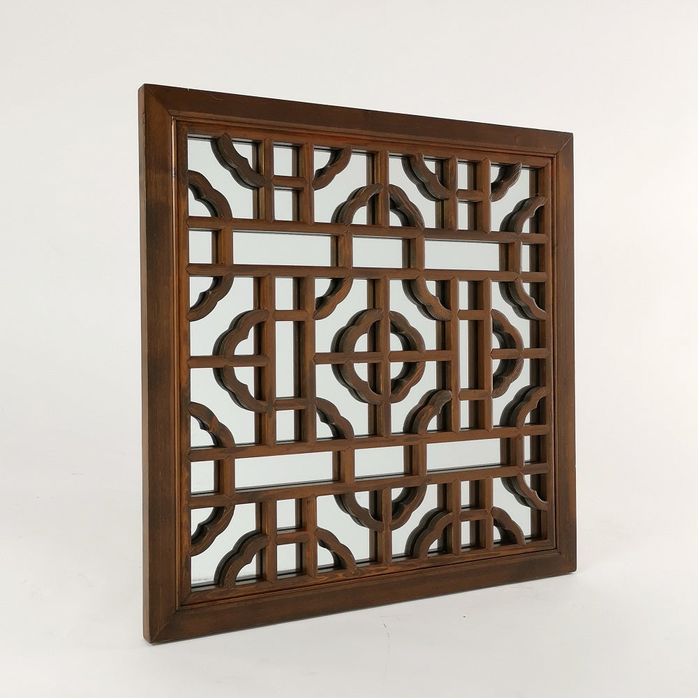 This lovely accent mirror will be a wonderful way to bring a dramatic effect to any room. Its geometric openwork pattern is delightful way to showcase the décor in any room. Beautifully framed mirror in a wooden brown color with metal D-rings hangers is ready to hang right out of the box. This mirror will look wonderful in any living room, hallway, and entry way or home office.