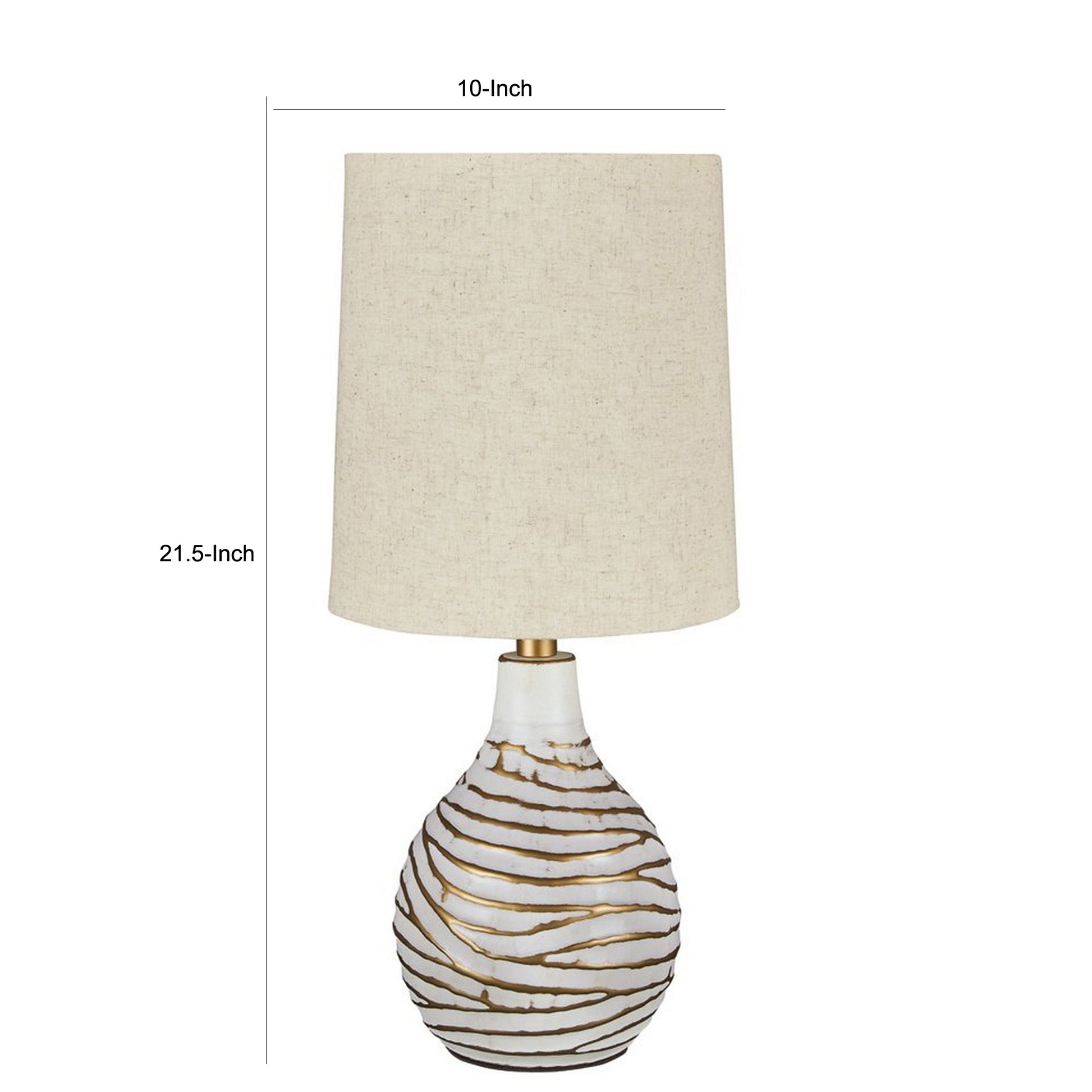 Pot Bellied Metal Table Lamp with Textured Golden Embellishment White