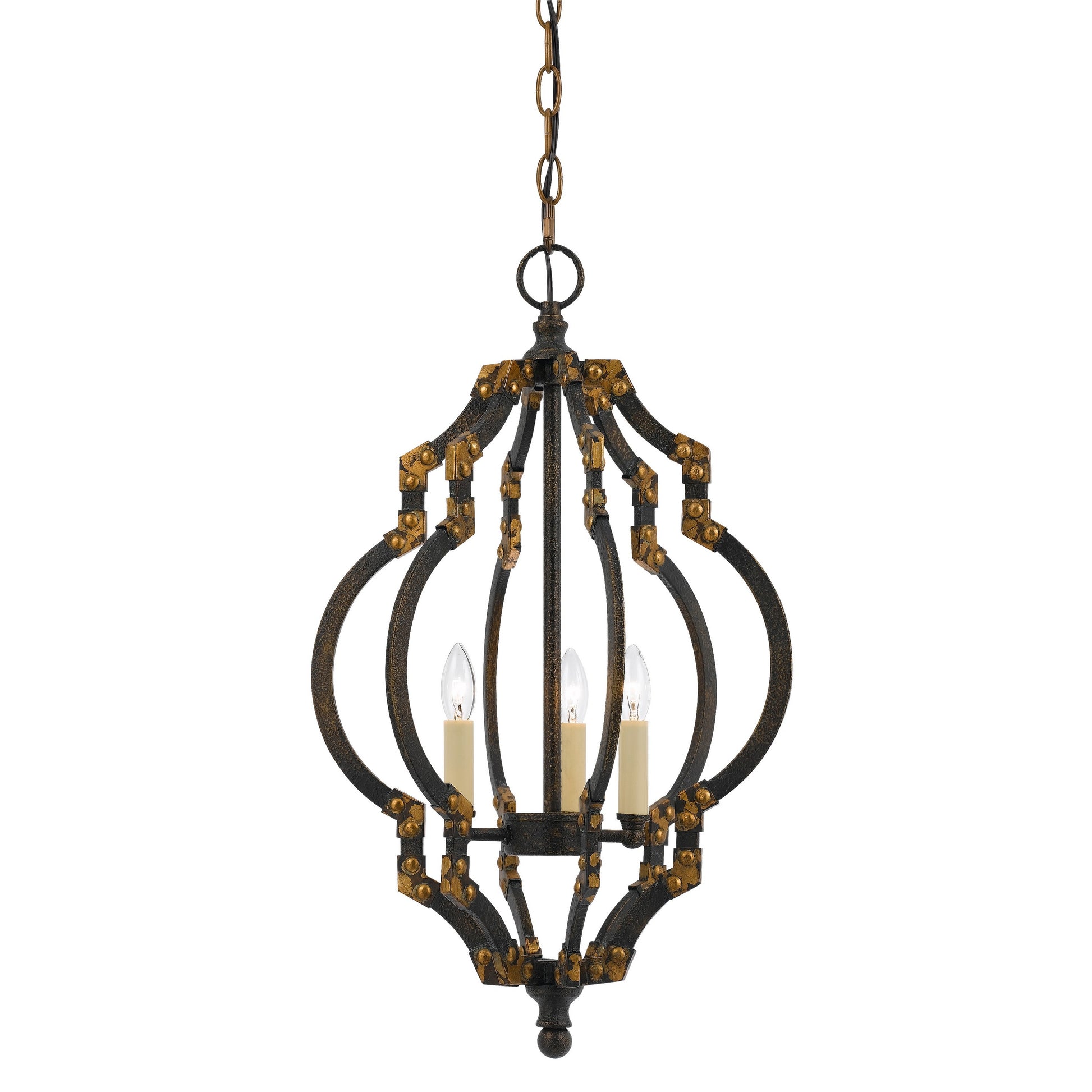 Add a tint of glamour and style with this sturdy metal constructed pendant lighting featuring transitional style. This quatrefoil design frame requires 3 bulbs of 40Watt for incorporated E12 bulb base and gold rivet accents complete its elegant look. It will surely provide warm ambient lighting to the area and blends seamlessly with your existing decor..
