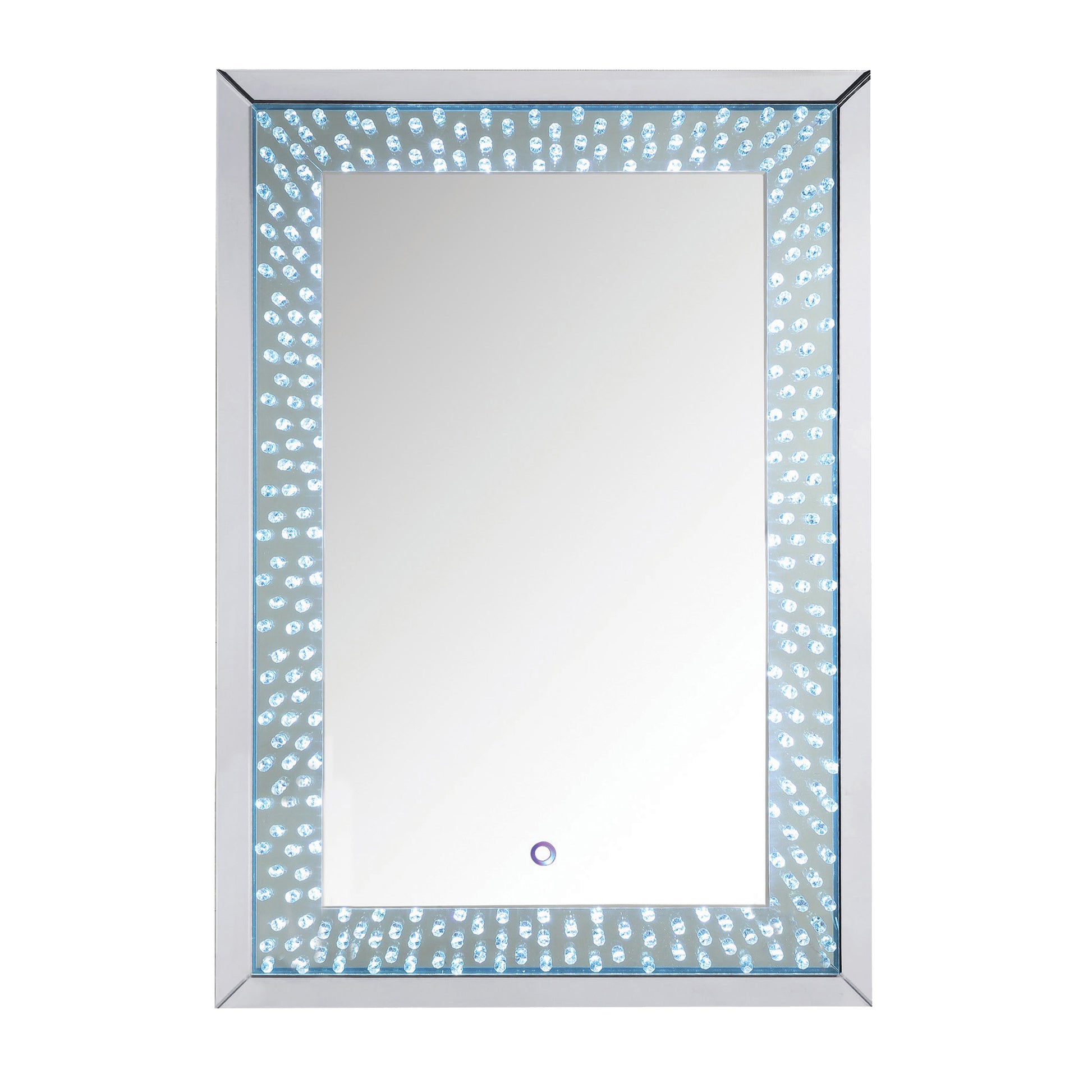 Rectangular Accent Wall Decor With Led Bulb And Beveled Edges Silver