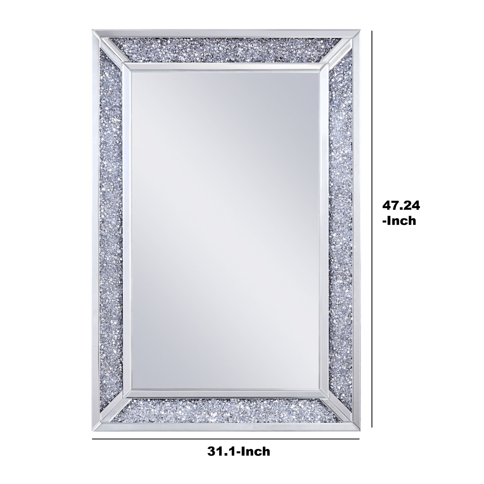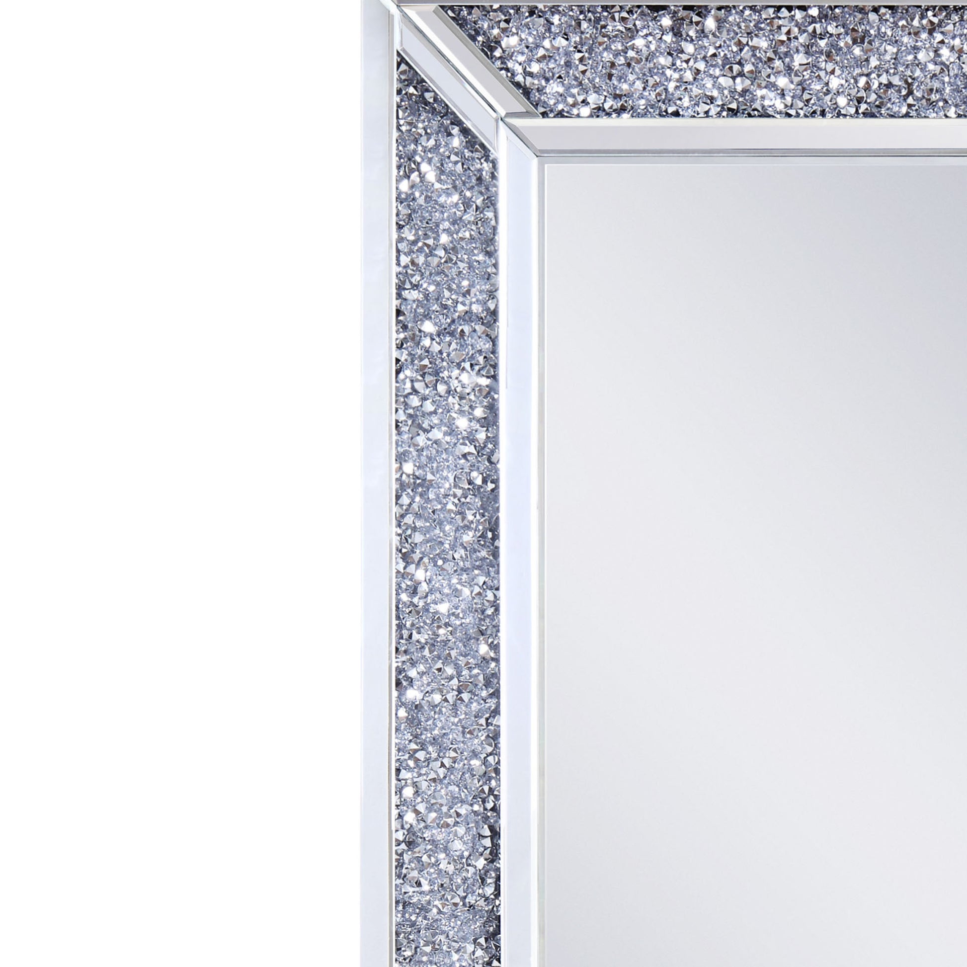 Rectangular Faux Crystal Inlaid Mirrored Wall Decor With Wooden Backing Clear