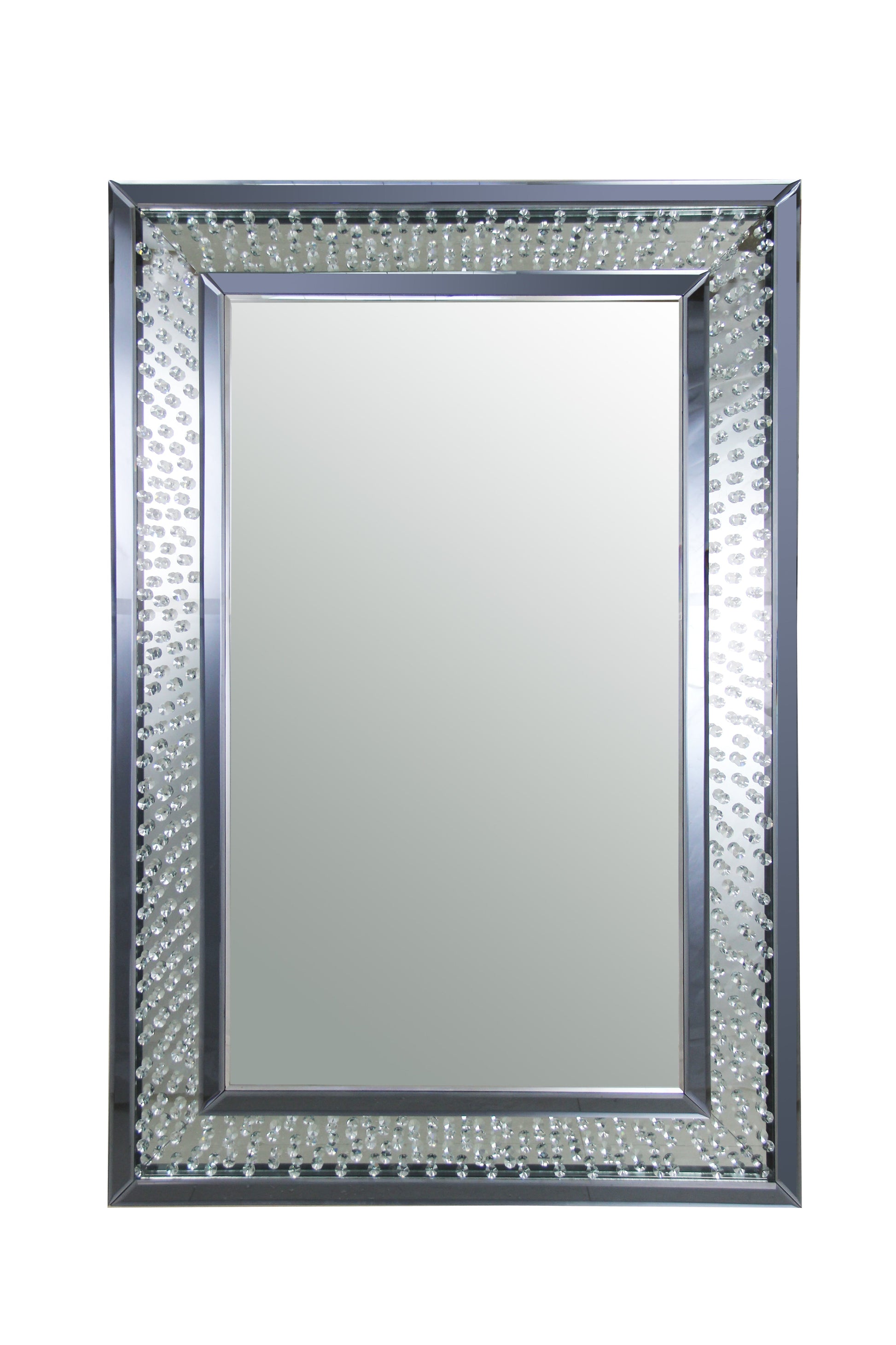 Rectangular Wall Accent Mirror With Crystal Insert Frame Silver