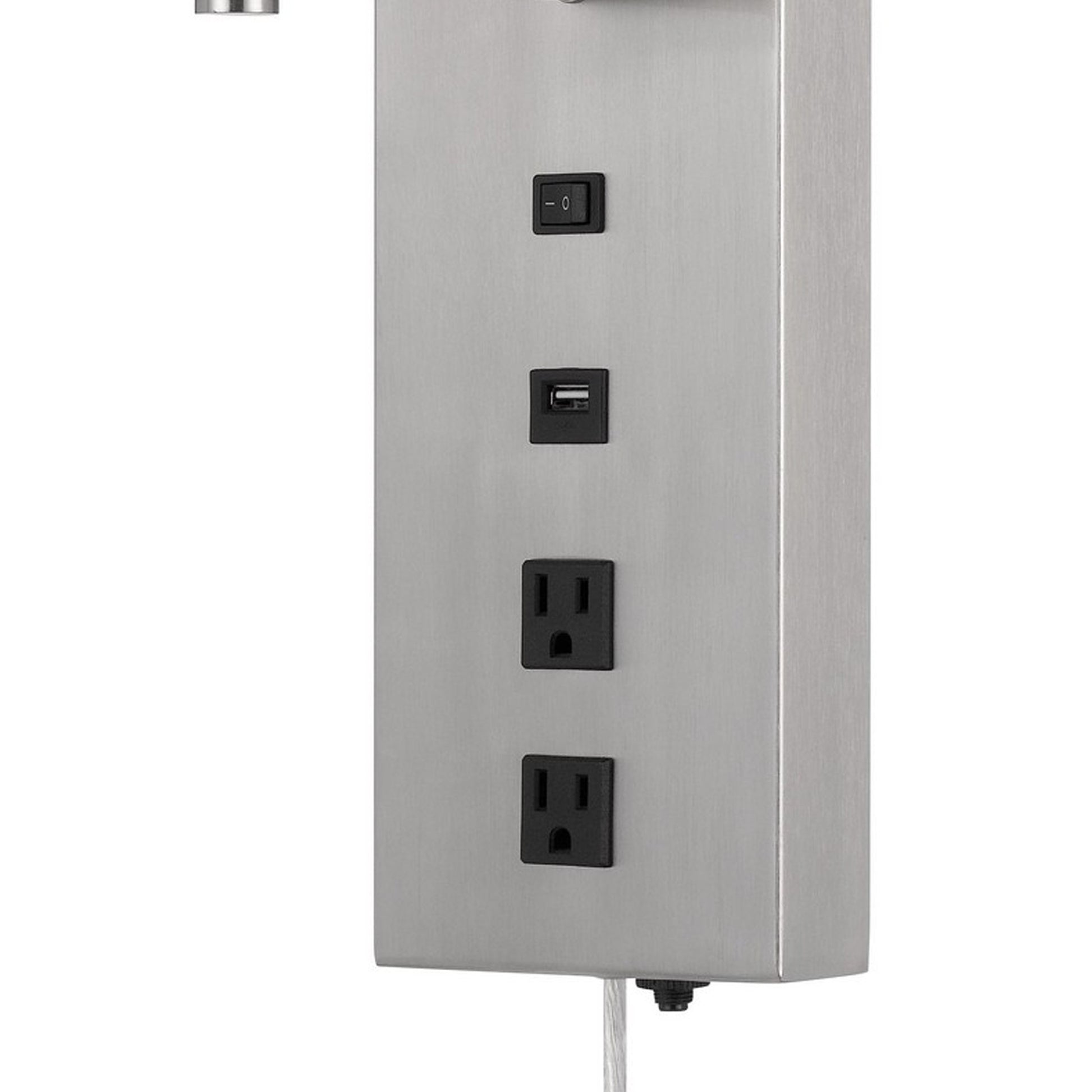 Rexi 19 Inch Modern Metal Wall Lamp Usb 2 Power Outlets White Silver