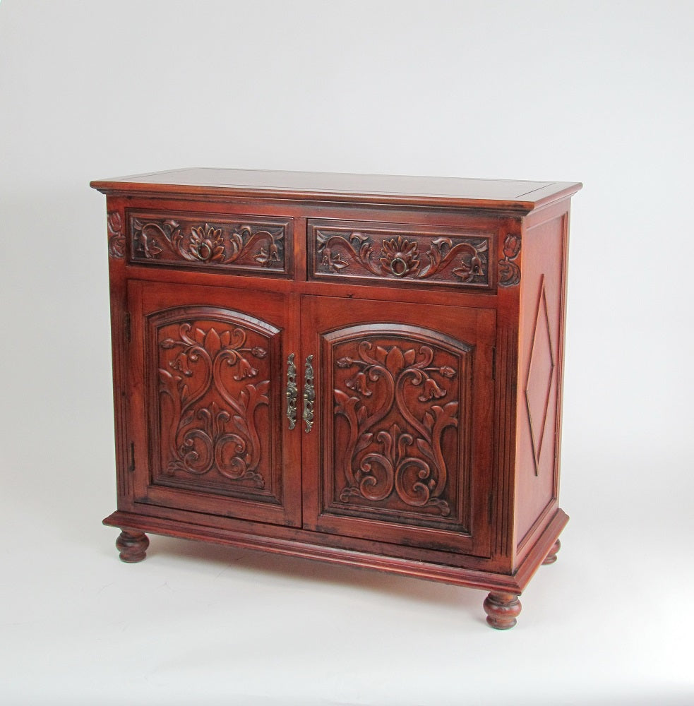 This beautifully crafted cabinet with a durable structure and design for a long lasting piece of furniture in your home. Suitable for your living room, bed room or home office this vintage style cabinet not only has plenty of space behind each door but is sturdy enough to hold a large vase with a floral design or a lamp to light up the whole room.
