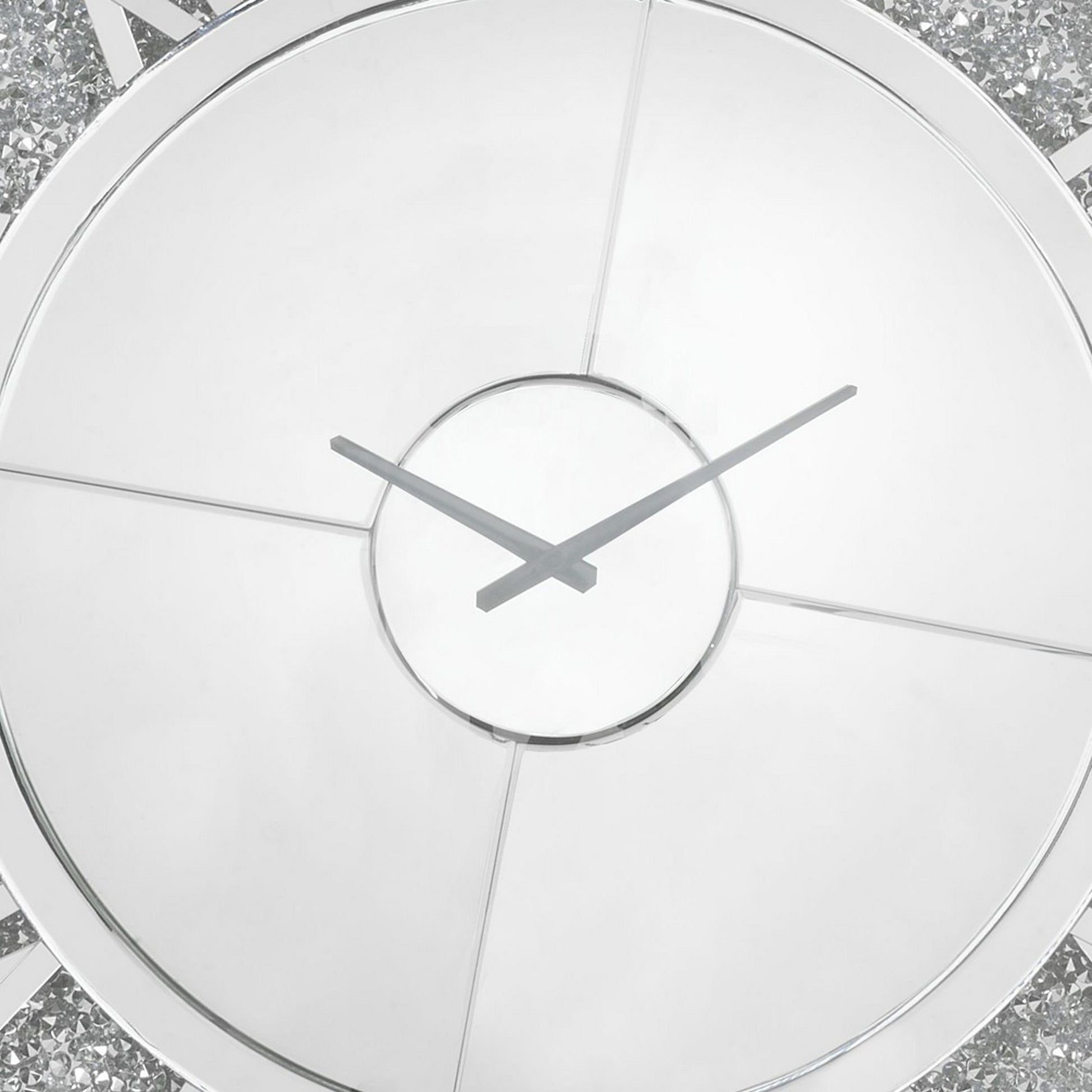 Round Beveled Mirror Frame Wall Clock With Faux Diamond Inlay Silver