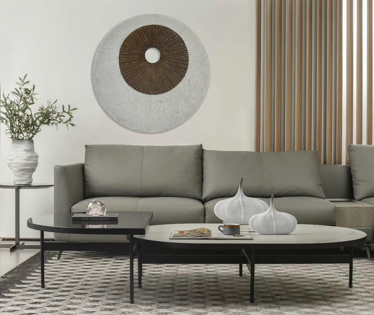 The Sandstone Circle Design Wall Art brings a relaxing accent to any wall in your home. You don't need an extensive art history background to appreciate the simple spiral Modern and Contemporary design on this round wall art. Made From Fine-pol Round Double Layer Wall Decor, Ribbed Finish.