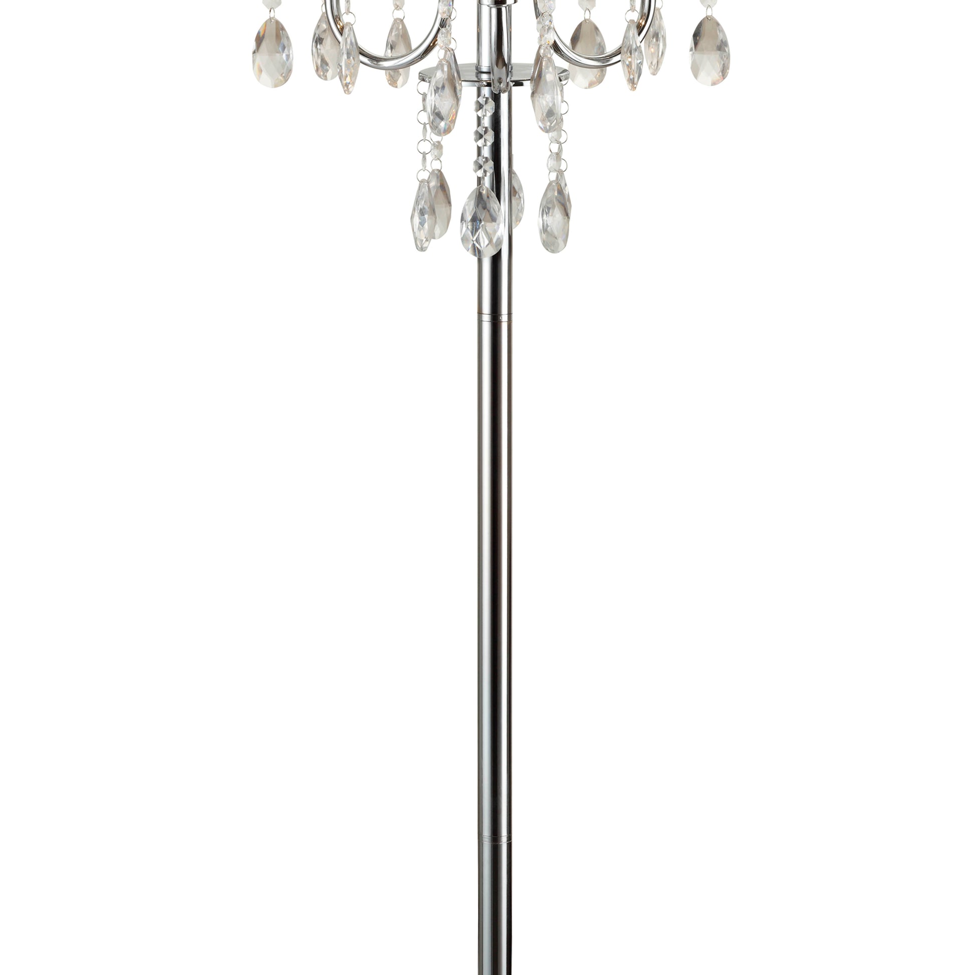 Round Fabric Wrapped Floor Lamp With Crystal Inlay Gray And Silver
