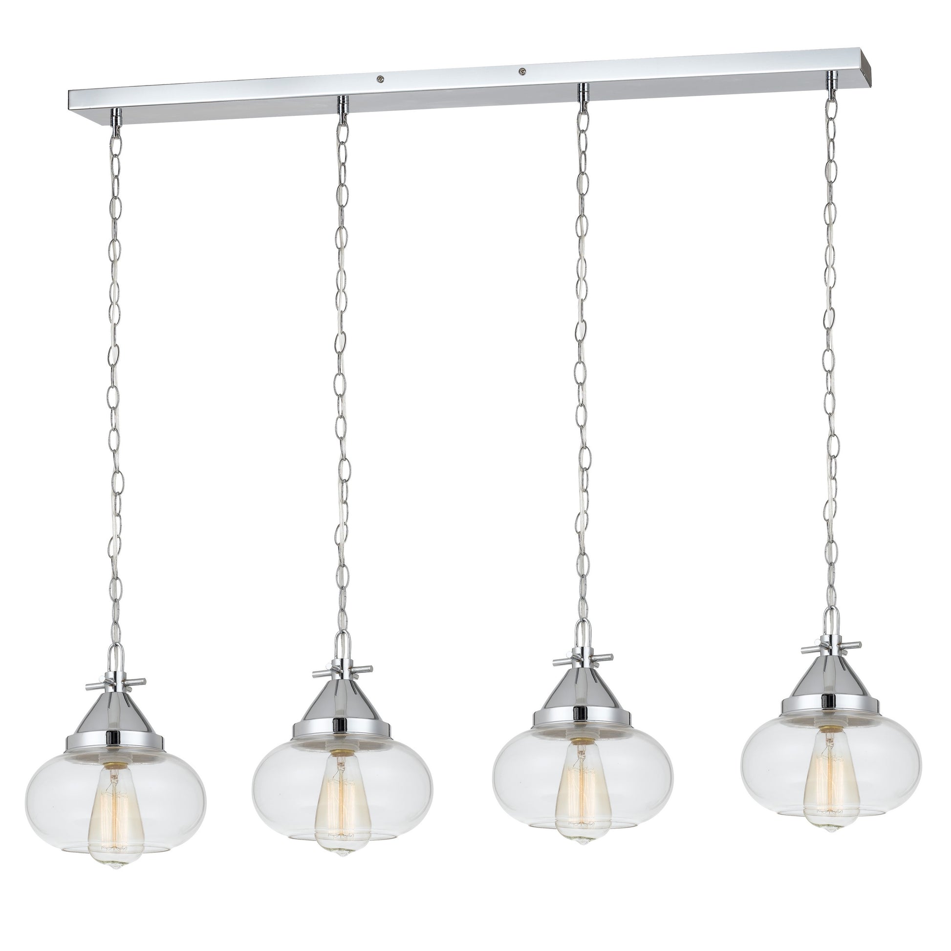 Simplistic and elegant, this sturdy metal constructed pendant lighting is here to provide you with perfect illumination. Round glass shade with chain design holders completes the look and makes it an ideal piece. It comes with a 10 feet cord which adds to the convenience.