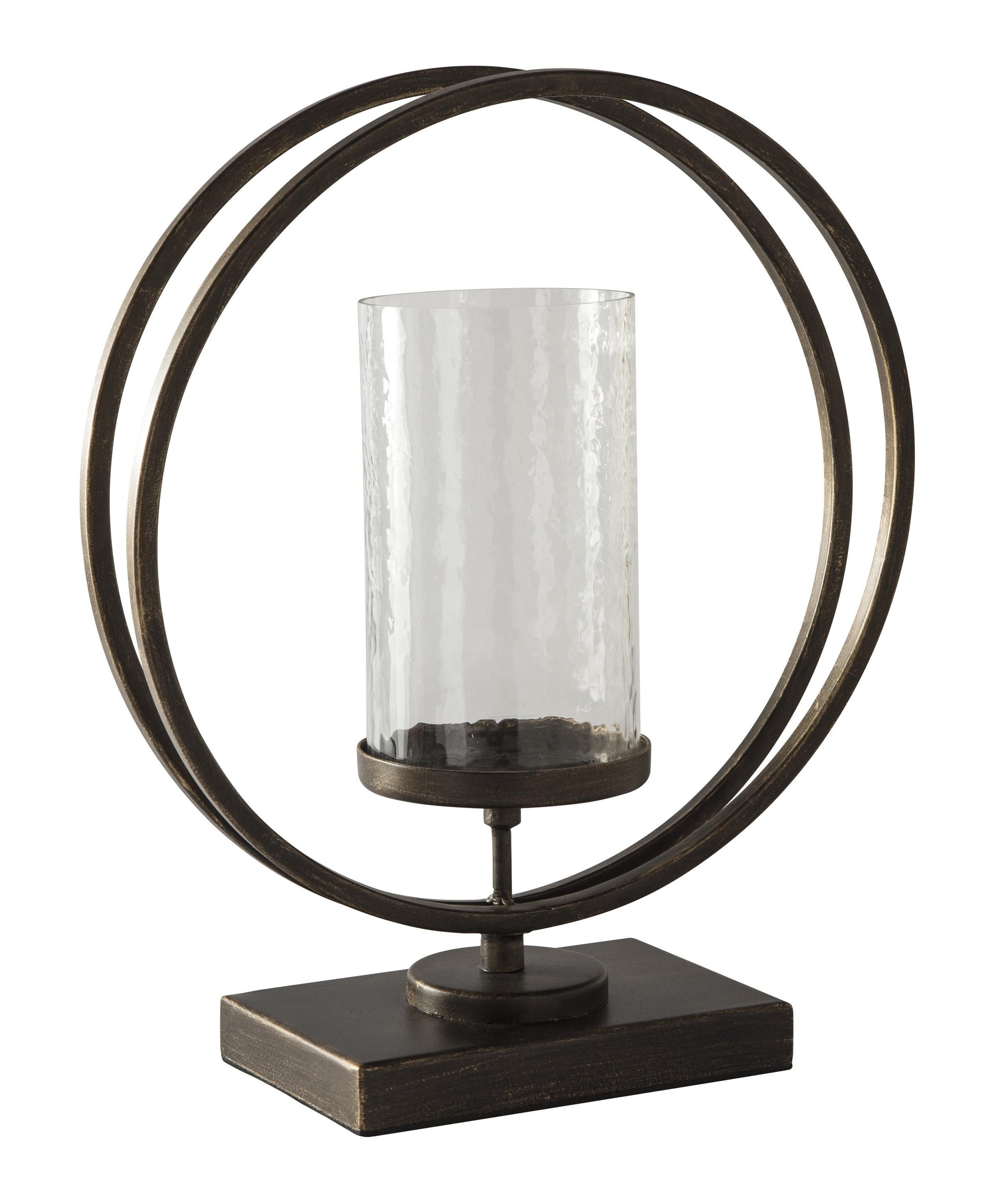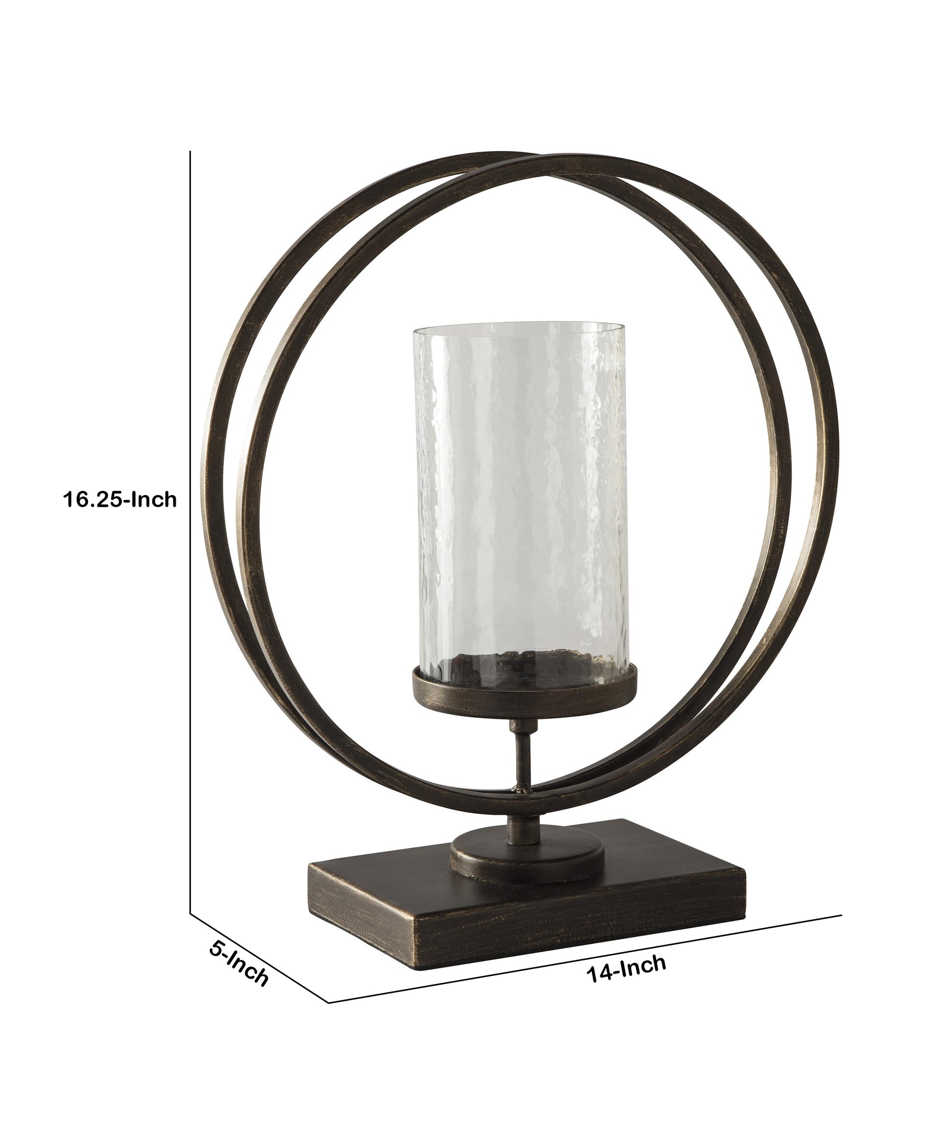 Round Metal Candle Holder With Rectangular Base Brown And Clear