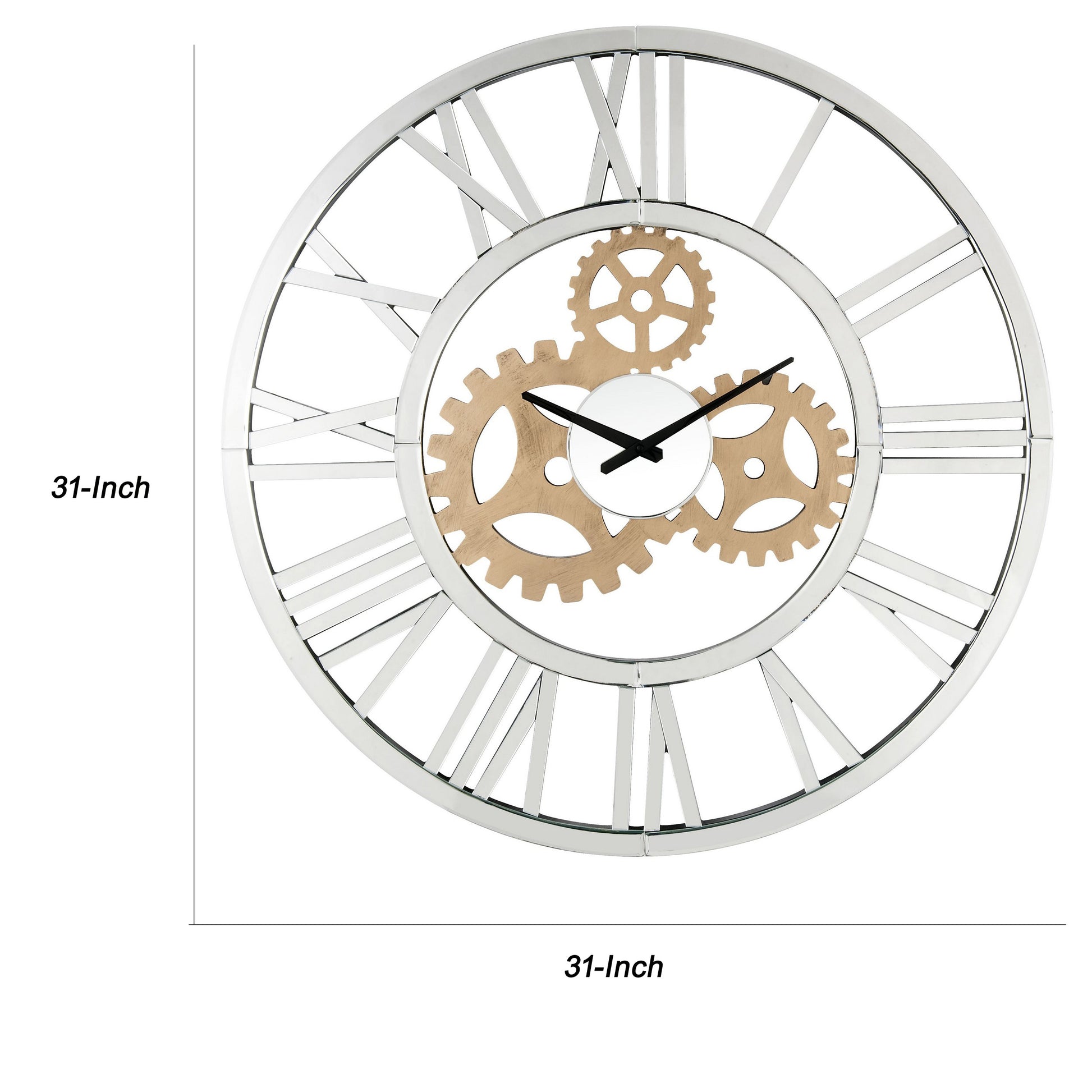 Round Mirror Panel Open Frame Wall Clock With Gear Design Silver