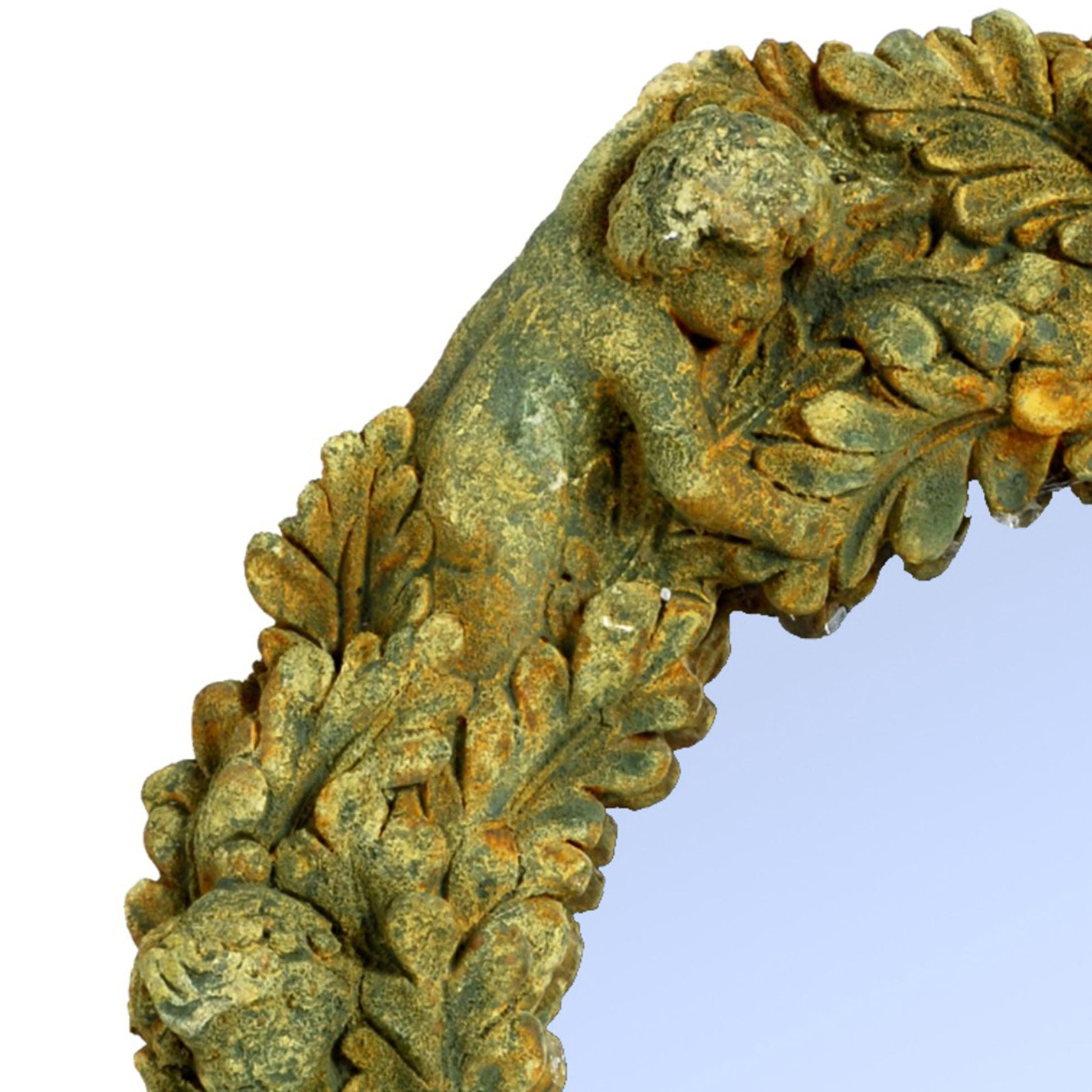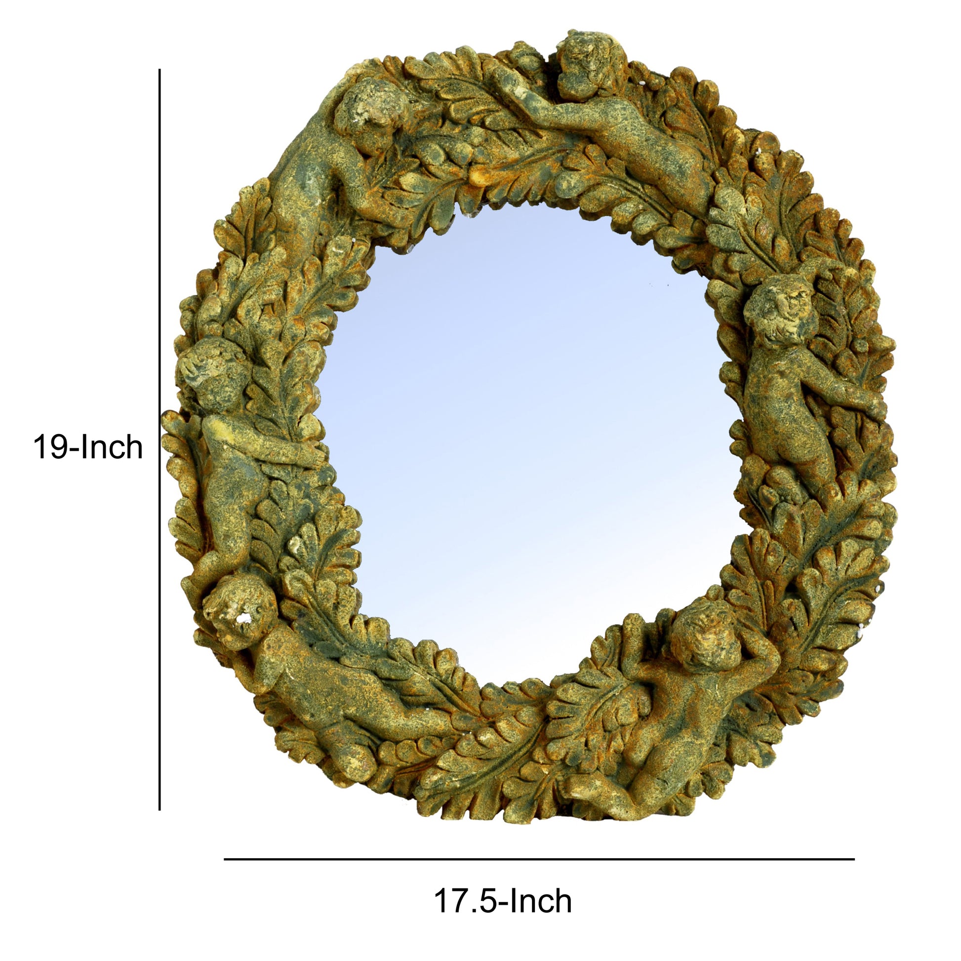 Exemplifies artistic design and unique taste, mount this classic mirror piece on the entrance wall of your living room or in the staircase area to create an aura of vintage appeal. Beautifully constructed using cement in a rustic green finish, this circular mirror features a unique thick cement border and a keyhole hanger. Use this alone or together with other decorative to create a personalized feel to your transitional space.