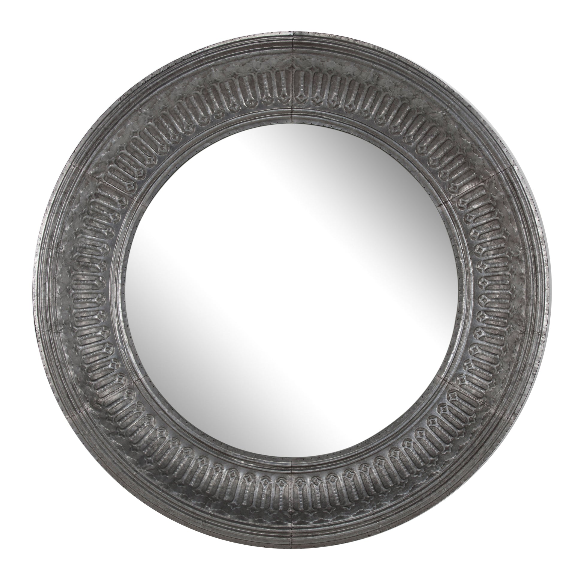 Round Wall Mirror With Thick Embossed Metal Border Antique Gray
