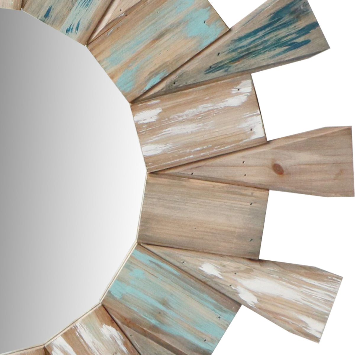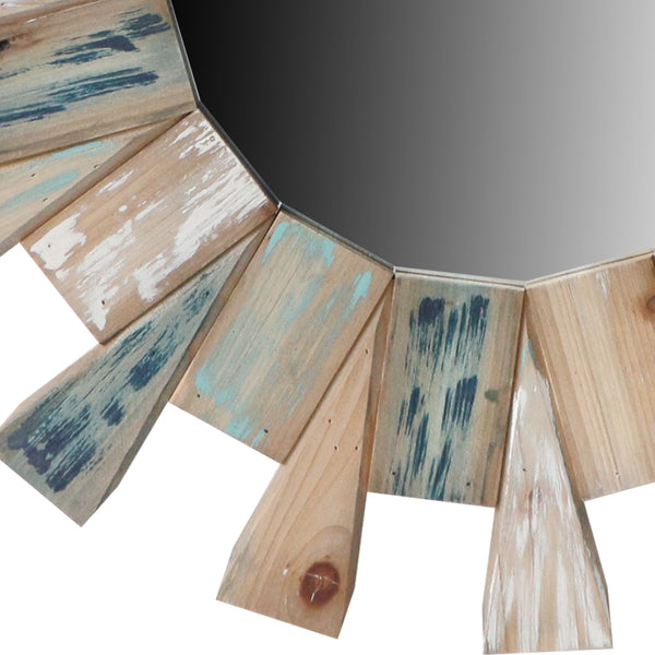 If you are vacillated by the thought of choosing a perfect Wall Mirror to compliment your existing decor setting, then this Wall Mirror which comes with triangular plank embellishment will be a perfect addition to your place. Crafted from the combination of fir wood and MDF frame, this wall mirror resembles craftsmanship of a detailed sunburst design. Incorporated with a mounting hardware on the back, it can be mounted above your mantelpiece with candleholder on it to get an enchanting appeal.