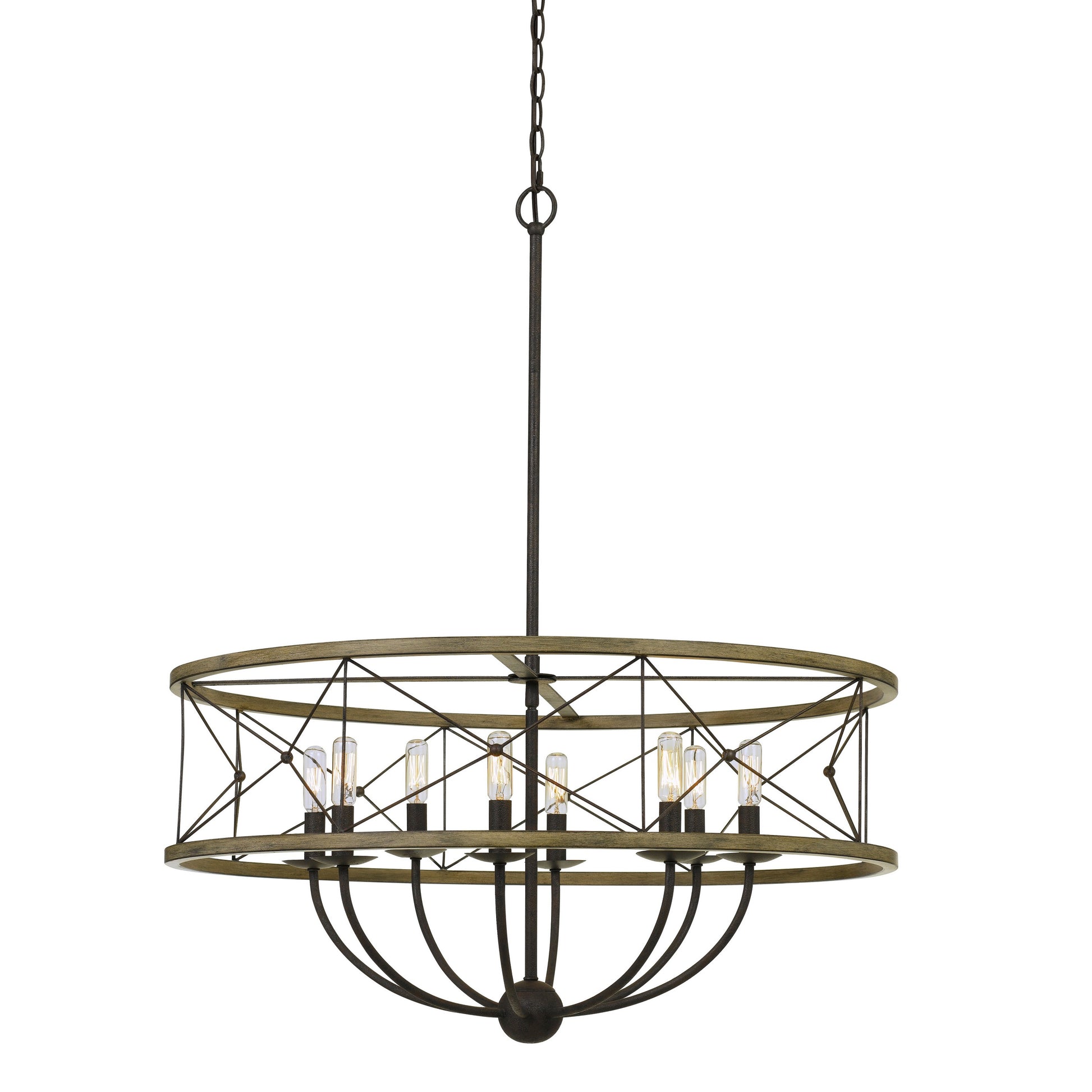 A perfect piece of elegance and style, this pendant fixture is an ideal way to uplift the decor of your home. Round wooden frame with metal lattice design and chain design holder completes the look and makes it an ideal piece. Candle like glass bulb holders provides a safe case to illuminate your bulbs.