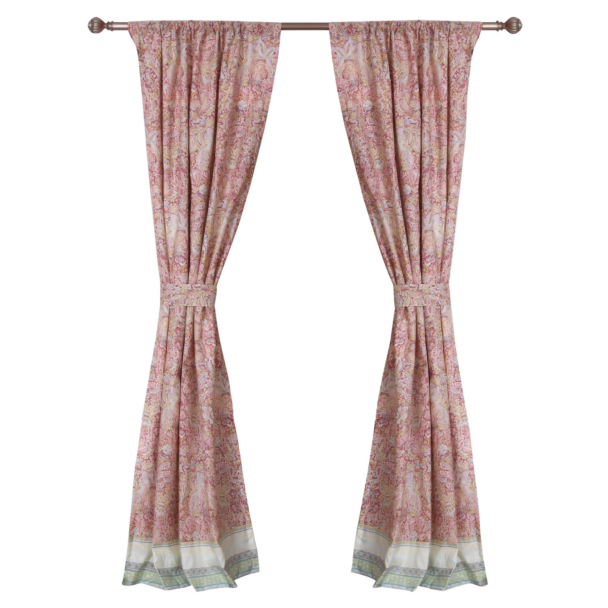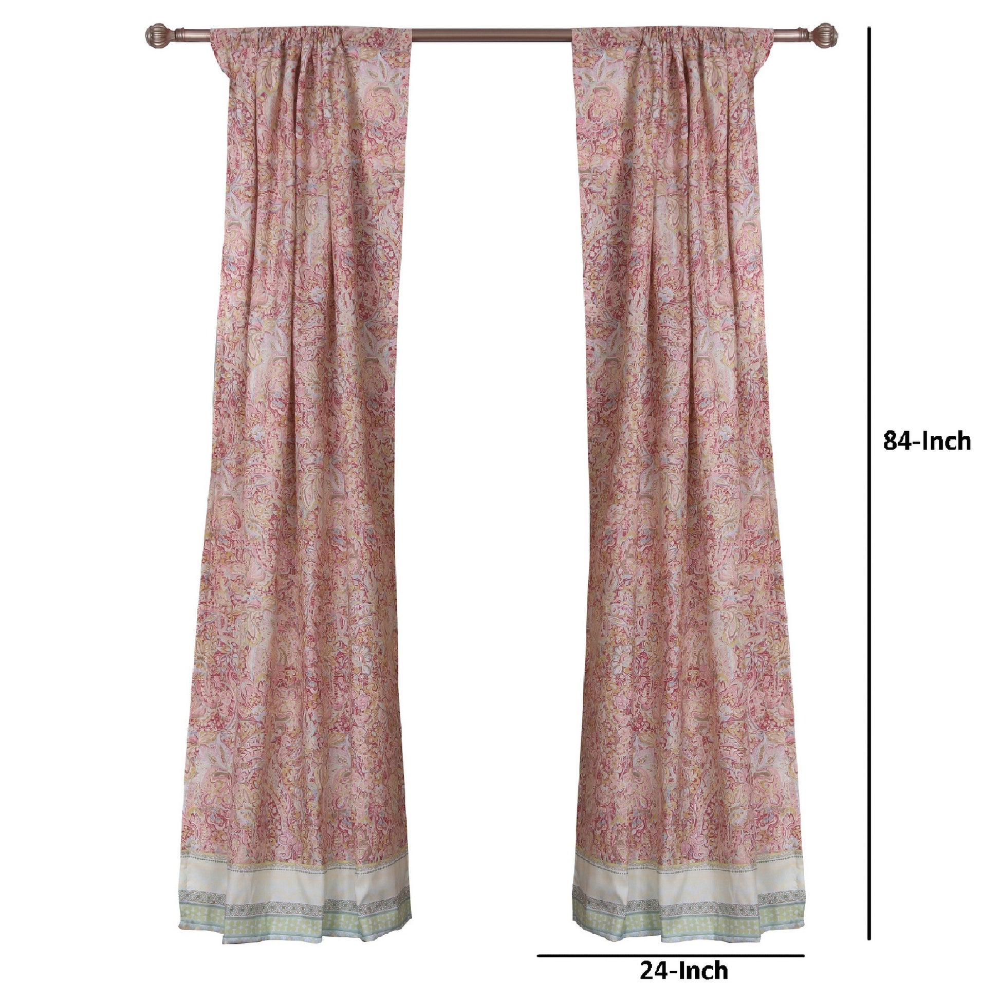 Rua 84 Inch Window Curtains Ferns Lotuses Rose Pink Microfiber Rod Holes