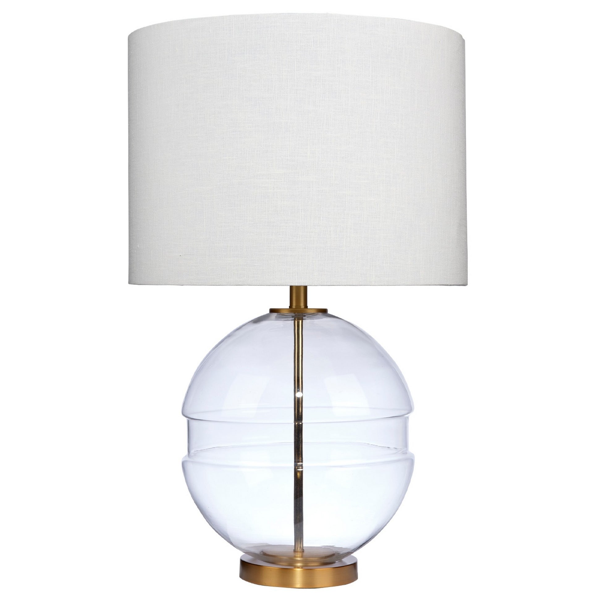 Sleek, stylish, and versatile, this gorgeous table lamp brings a sense of cozy, comfortable ambiance to even the longest work nights. The clear spherical glass surrounding the metal axis is strikingly bold, yet subtly understated, while a milky white linen shade provides soft light diffusion for a sense of elegance and intimacy. Check out our Satellite collection for matching items.