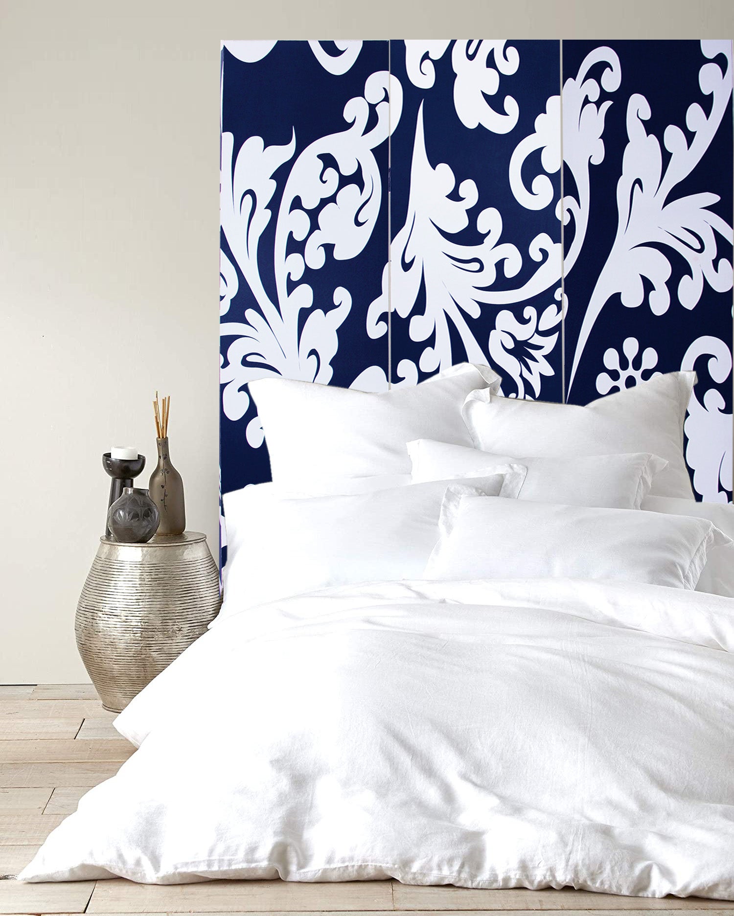 This is a 3 panel screen printed on canvas. The screen is two sided with different and complementary images on each side. It is light weight and very easy to move. The screen also has inspirational wall décor applications. This is a 3 panel screen printed on canvas. The screen is two sided with different and complementary images on each side. It is light weight and very easy to move. The screen also has inspirational wall décor applications.