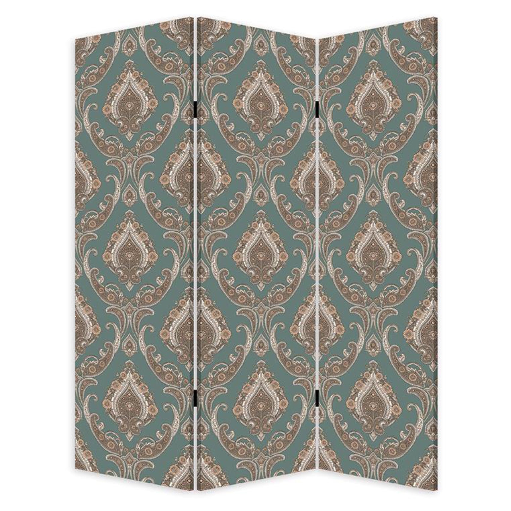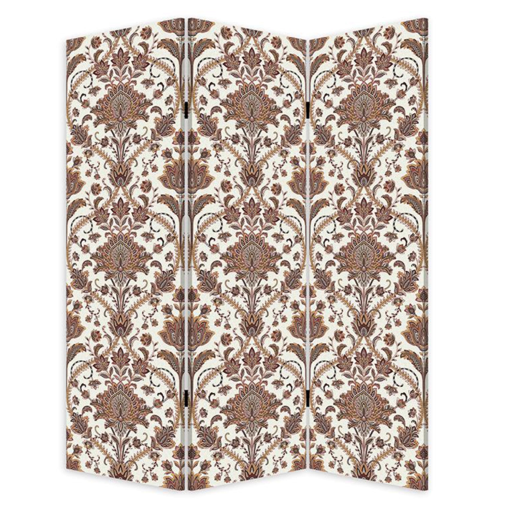Screen Gems Baroque Screen SG-388, inspired by baroque style wall paper. Bring in some elegance with this beautiful baroque style room divider, screen printed on canvas. The screen is two sided with different and complementary images on each side. It is light weight and very easy to move. Can also serve as a unique wall art or headboard. One price gets two different finishes, Switch sides to get a fresh look because each side finishs with different scenery
