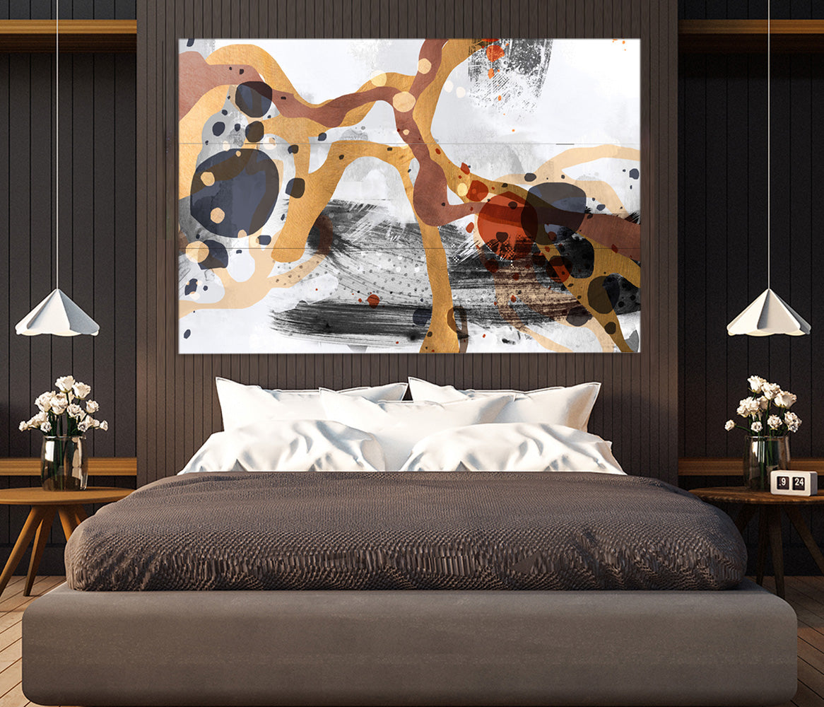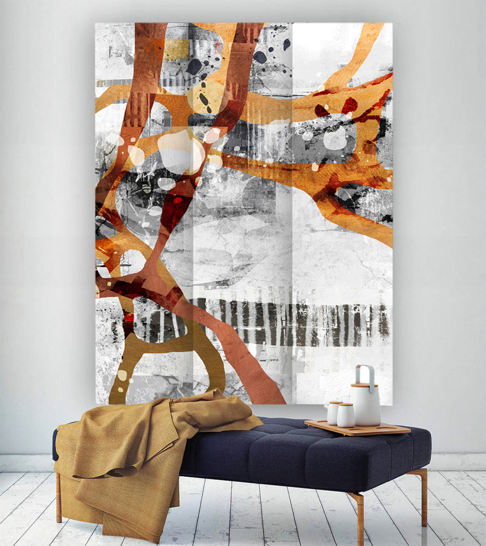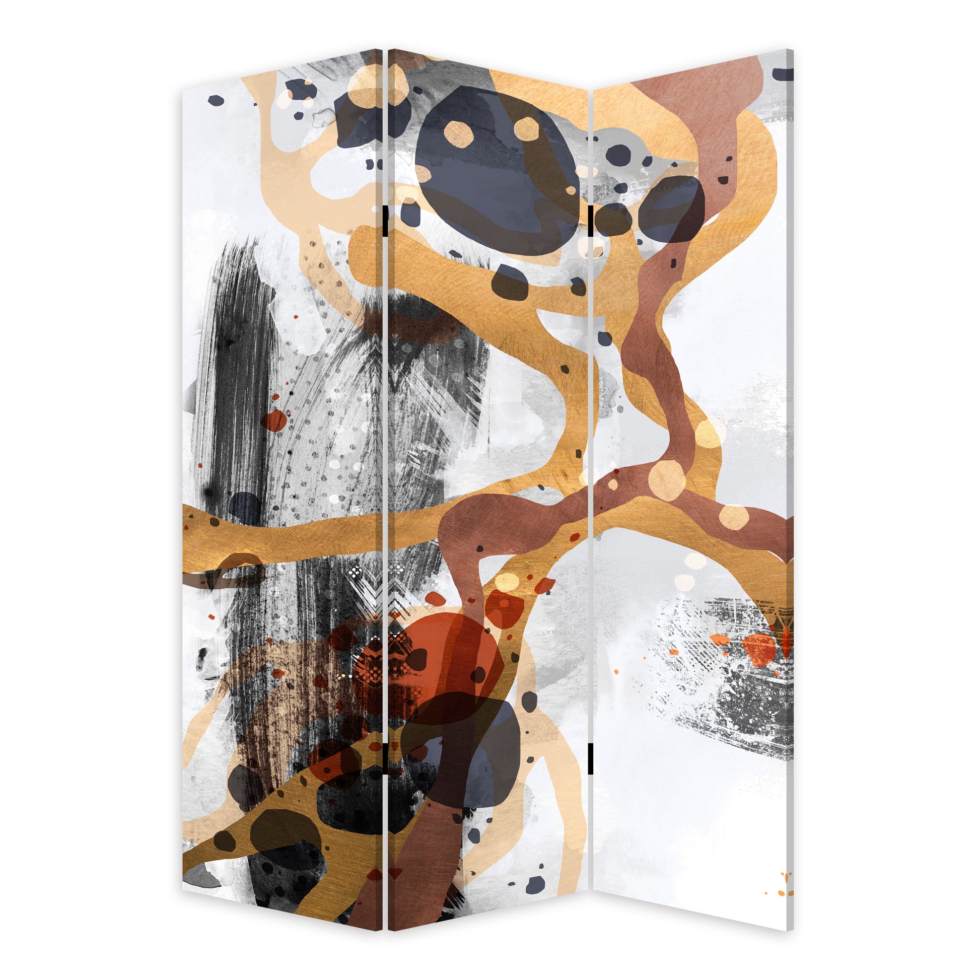 Screen Gems Bellamy Screen SG-383, This is a 3 panel screen printed on canvas featuring a beautiful spalsh art, abstract design. The screen is two sided with different and complementary images on each side. It is light weight and very easy to move. Can also serve as a unique wall art or headboard. One price gets two different finishes, Switch sides to get a fresh look because each side finishs with different scenery