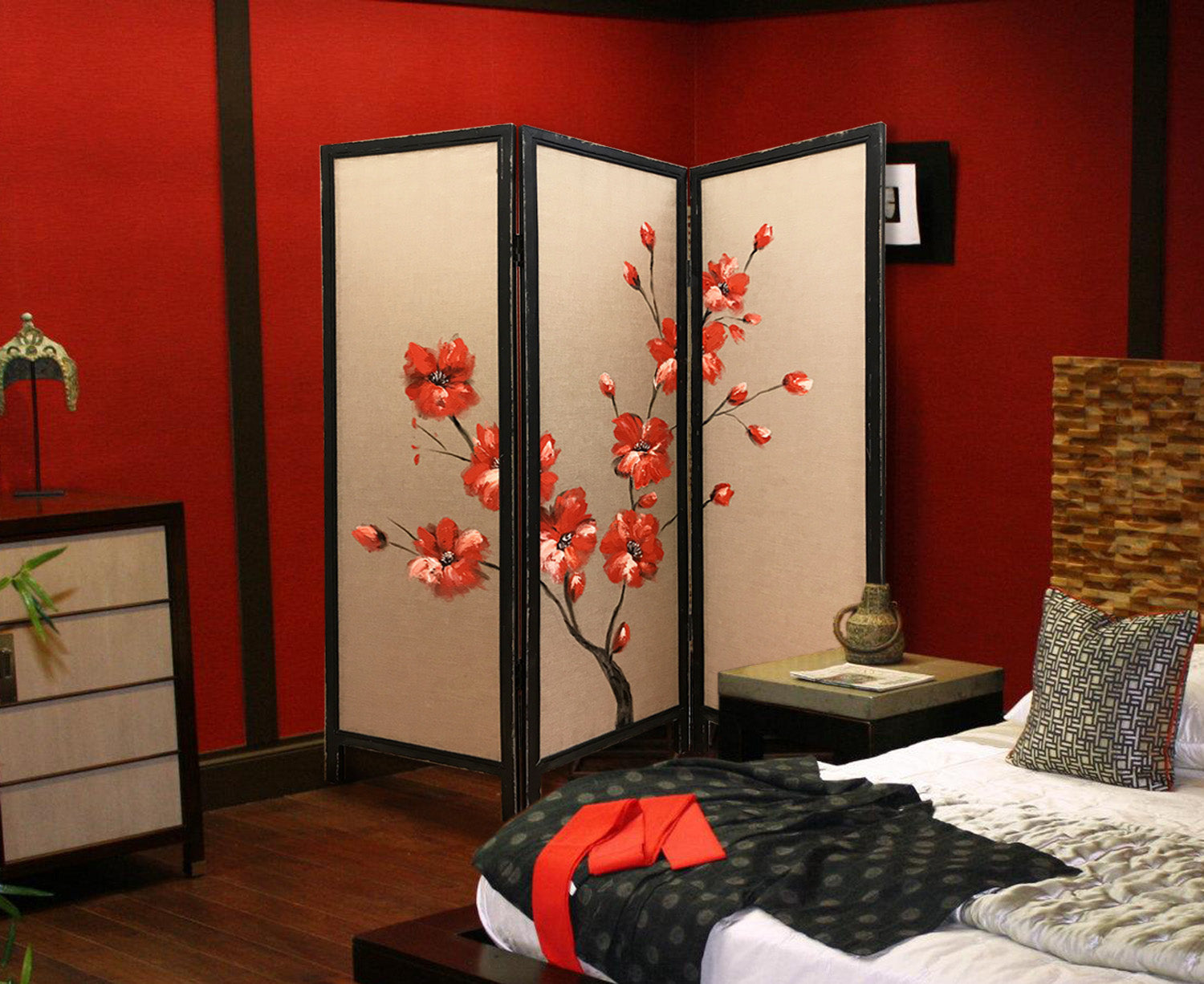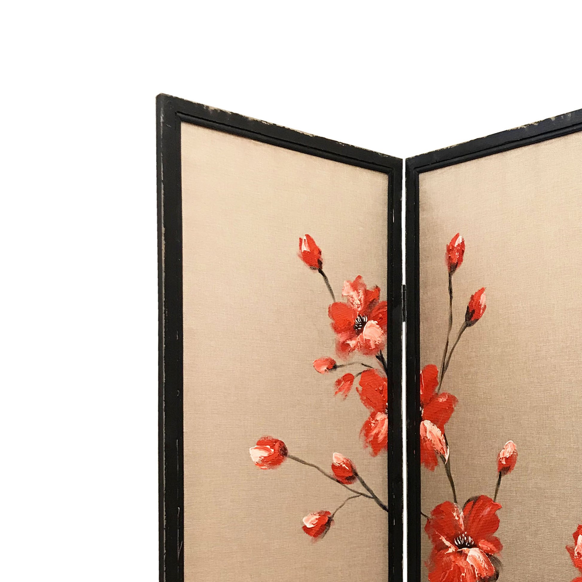 Screen Gems Blooming Screen SG-321, this 3 panel screen screen is an artwork in itself. Crafted from a solid wood frame, this screen features a beautiful red poppy hand painted design on fabric. Making each piece one of a kind.