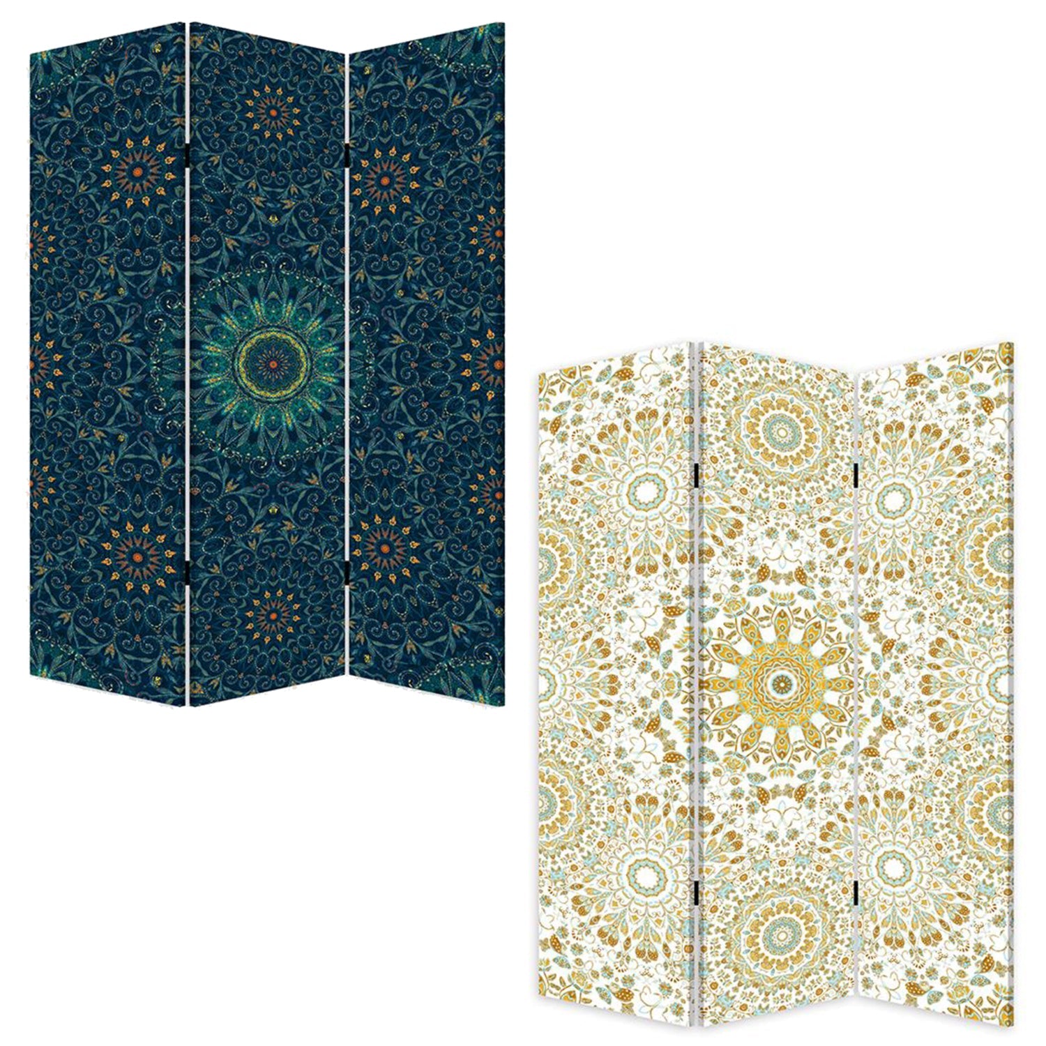 Screen Gems Boho Chic Screen SG-391, This room divider is screen printed on canvas, featuring a contemporary bohemian design. It is two sided with different and complementary images on each side. Light weight and very easy to move. Can also serve as a unique wall art or headboard. One price gets two different finishes, Switch sides to get a fresh look because each side finishs with different scenery
