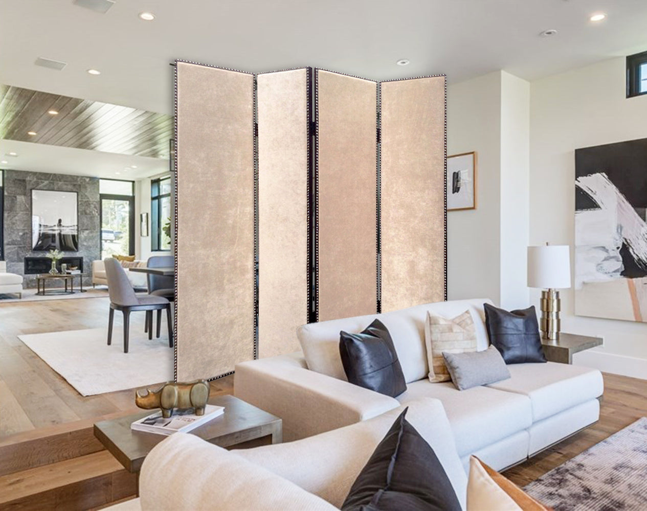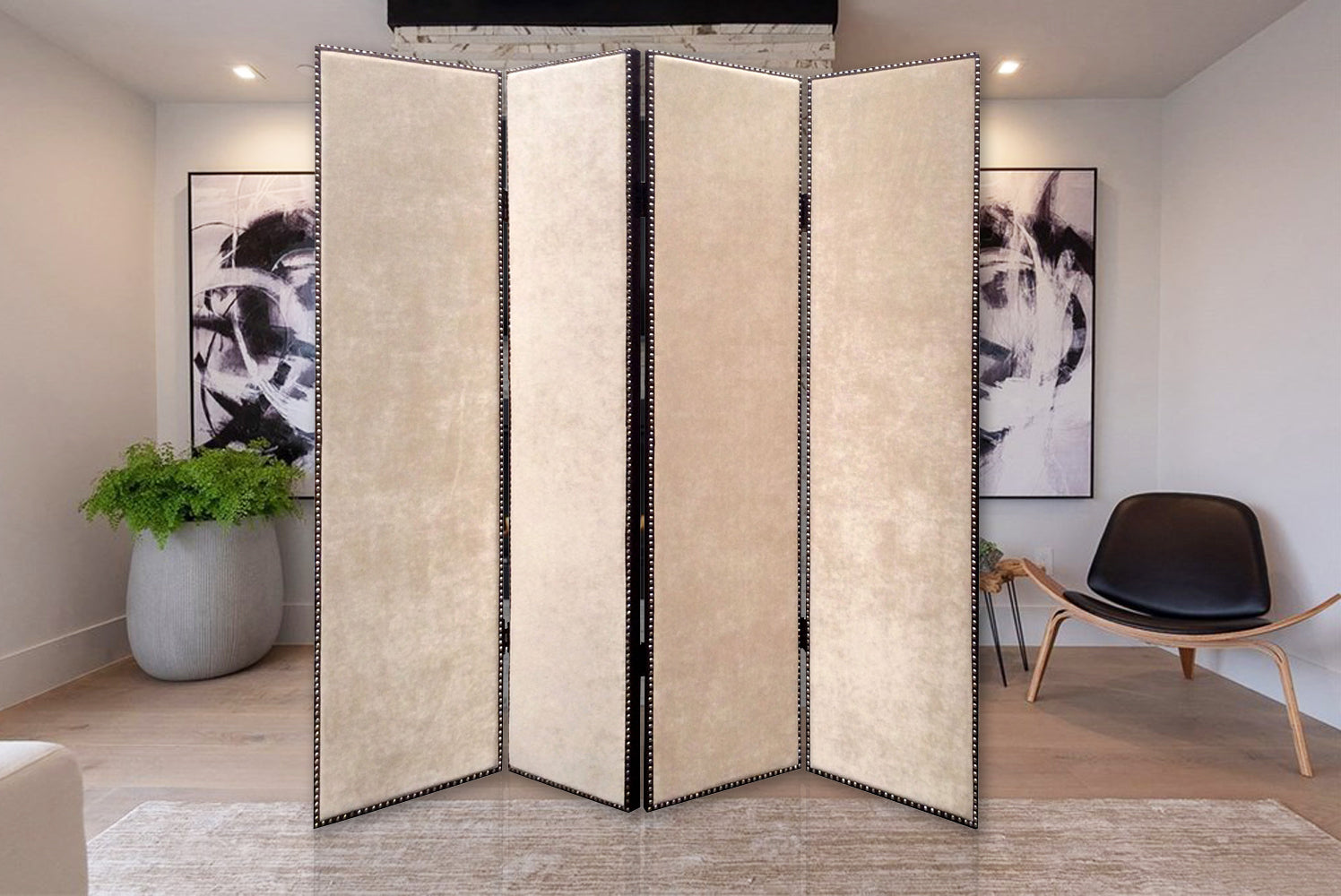 - Each panel is stylishly designed and finished with high quality of fabric, Screen is trimmed in antique brass nail heads