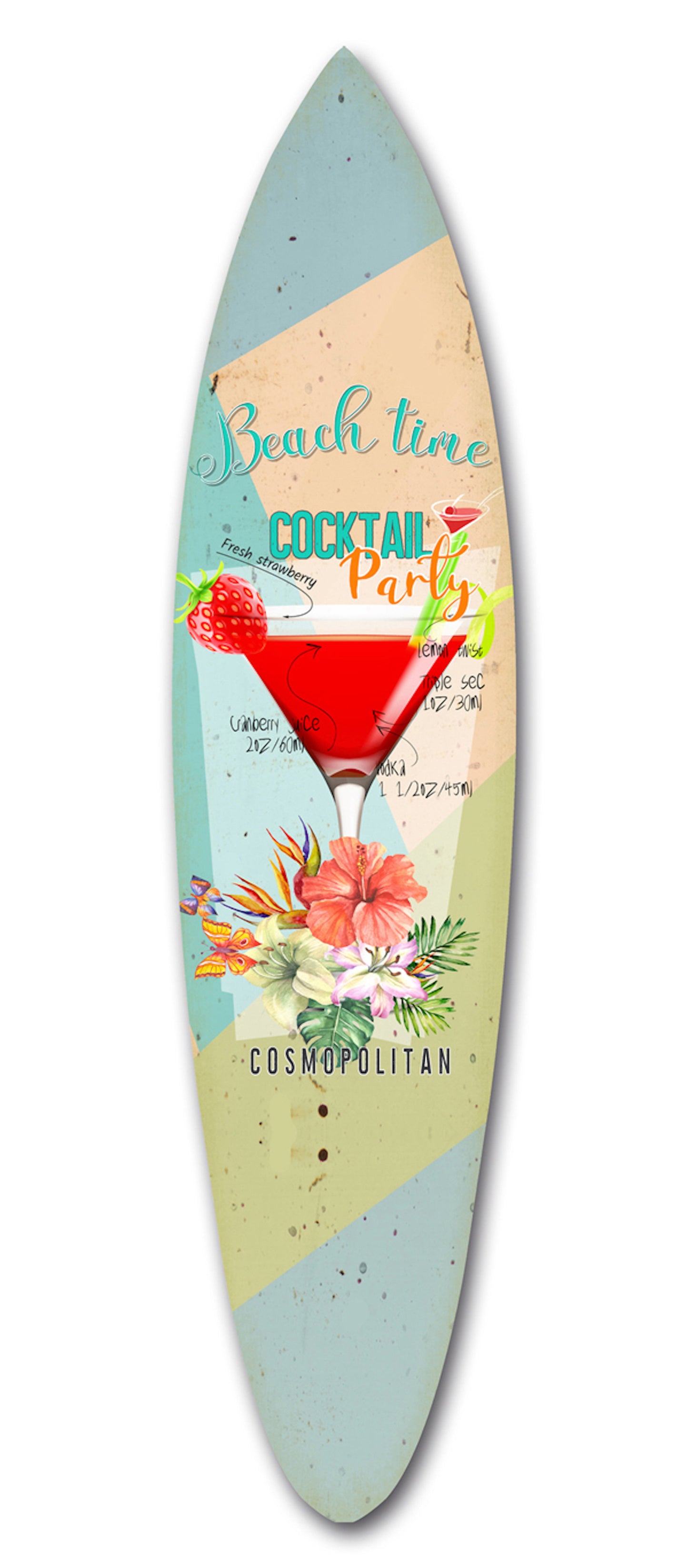 Screen Gems Cocktail Surfboard Wall Art SGW91912 features vibrant colors printed on a wood panel. The distressed graphics give this piece a one-of-a-kind vintage feel. Invisible mount and hardware on the back make it easy to hang vertically or horizontally. Perfect for any decor!