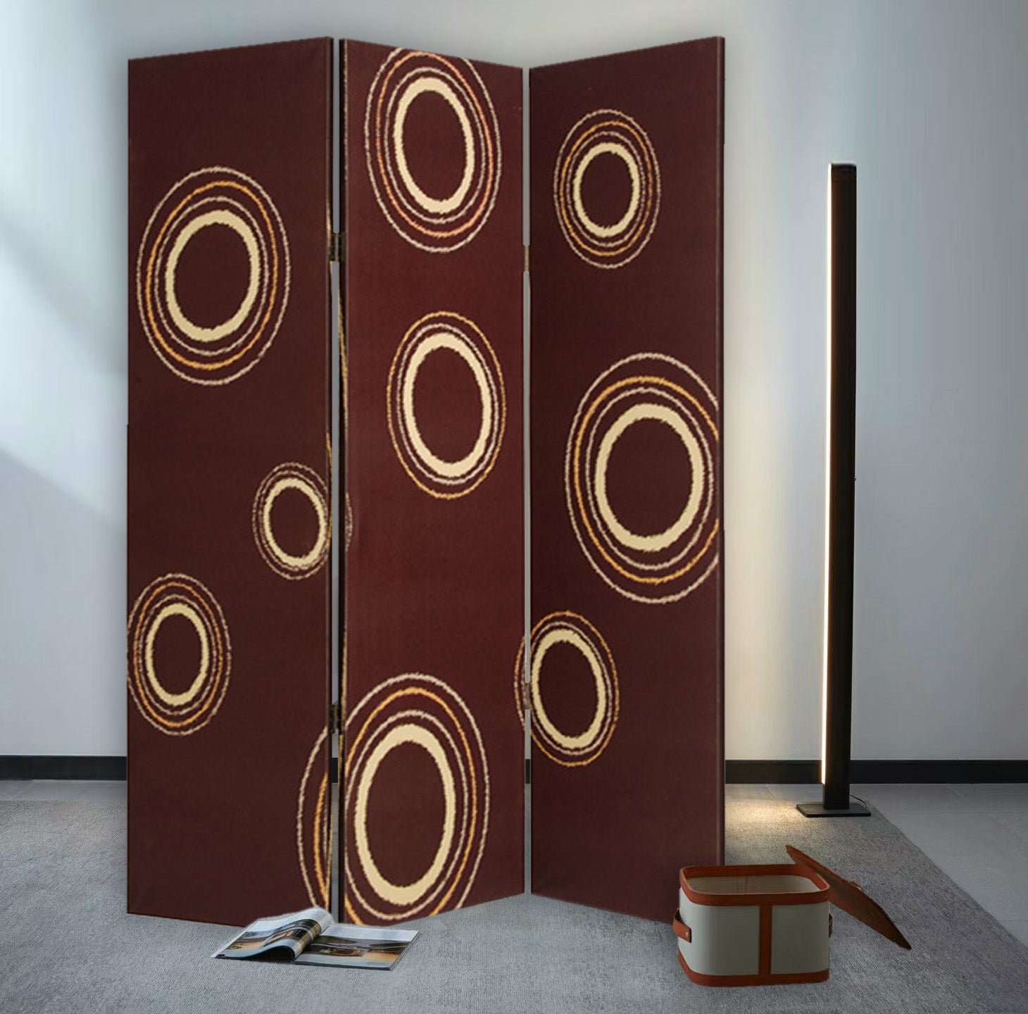 This is a 3 panel screen printed on canvas. The screen is two sided with different and complementary images on each side. It is light weight and very easy to move. The screen also has inspirational wall décor applications. This is a 3 panel screen printed on canvas. The screen is two sided with different and complementary images on each side. It is light weight and very easy to move. The screen also has inspirational wall décor applications.