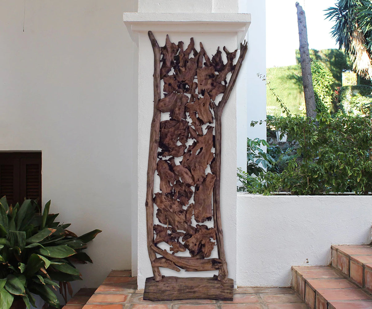 Screen Gems 77" tall Durango Screen is made by reclaimed wood to offer the natural beauty. Because it's tall, reaching for the ceiling and acting as a room divider while lighting up a room with an outdoor ambiance.