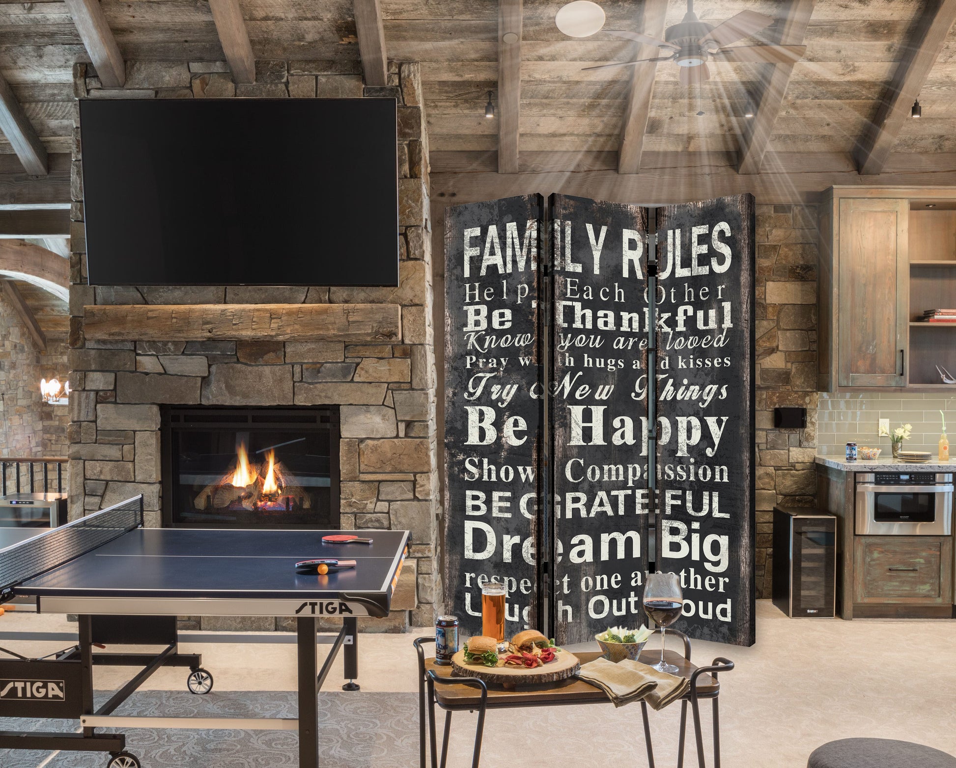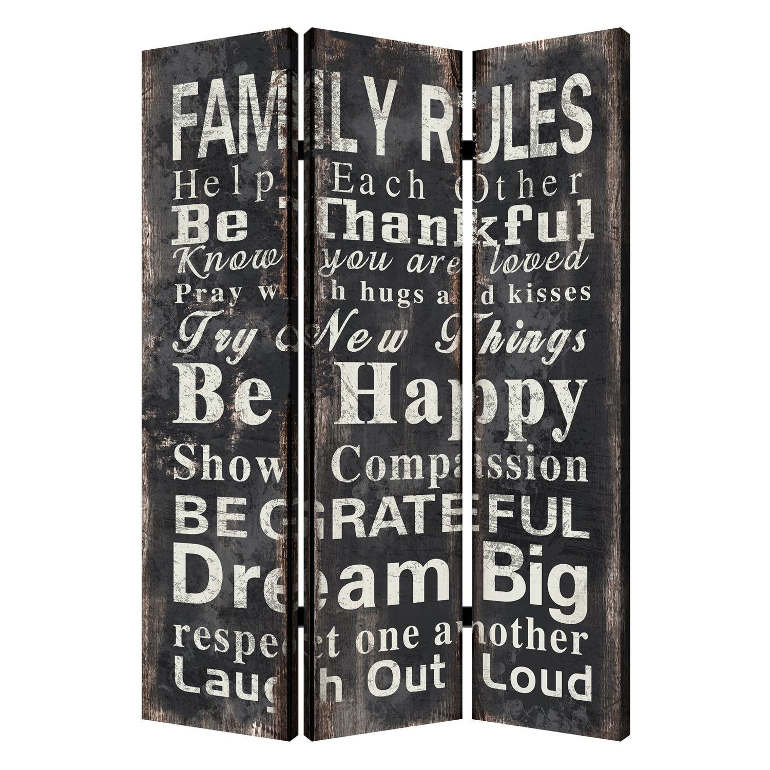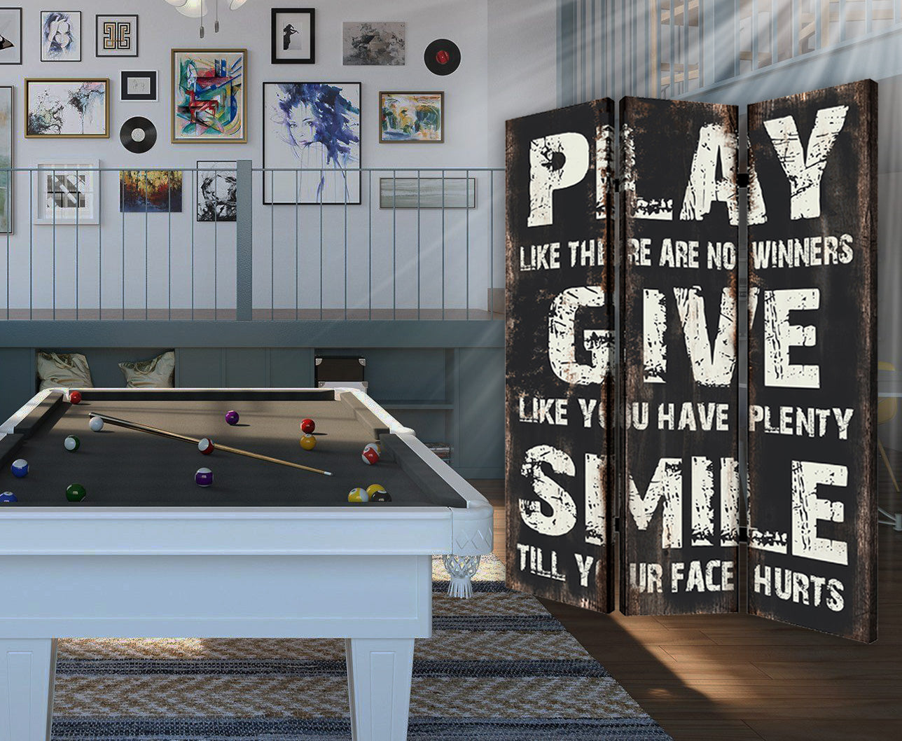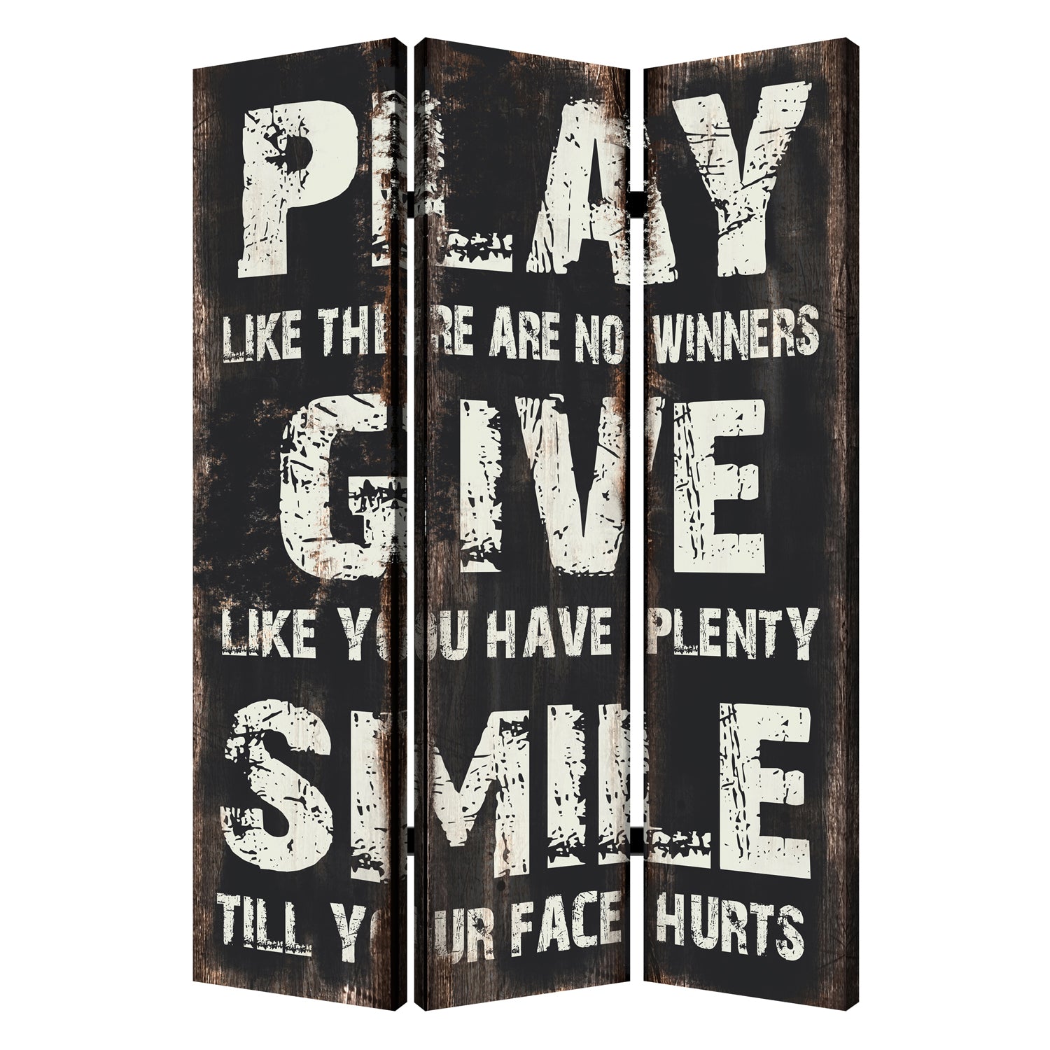 This is a 3 panel screen printed on canvas. The screen is two sided with different and complementary images on each side. It is light weight and very easy to move.