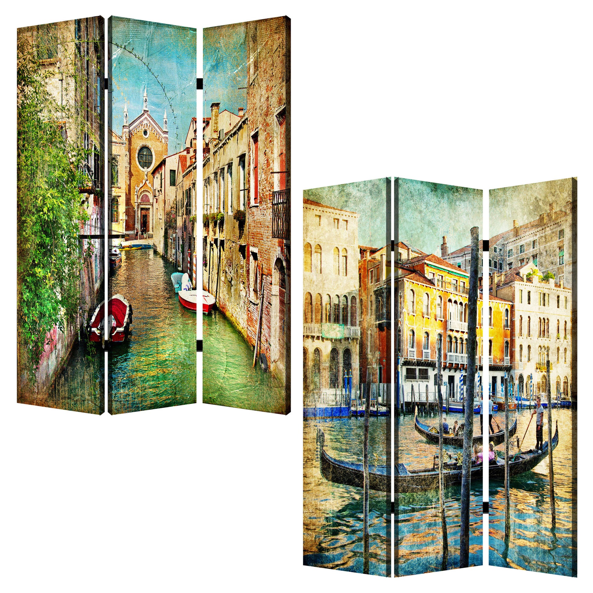 This is a 3 panel screen printed on canvas. The screen is two sided with different and complementary images on each side. It is light weight and very easy to move. The screen also has inspirational wall décor applications. This is a 3 panel screen printed on canvas. The screen is two sided with different and complementary images on each side. It is light weight and very easy to move. The screen also has inspirational wall décor applications.