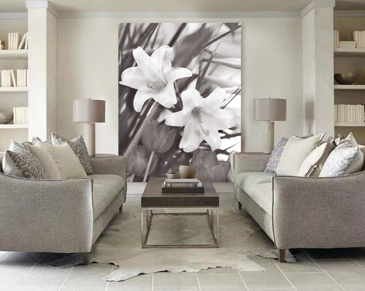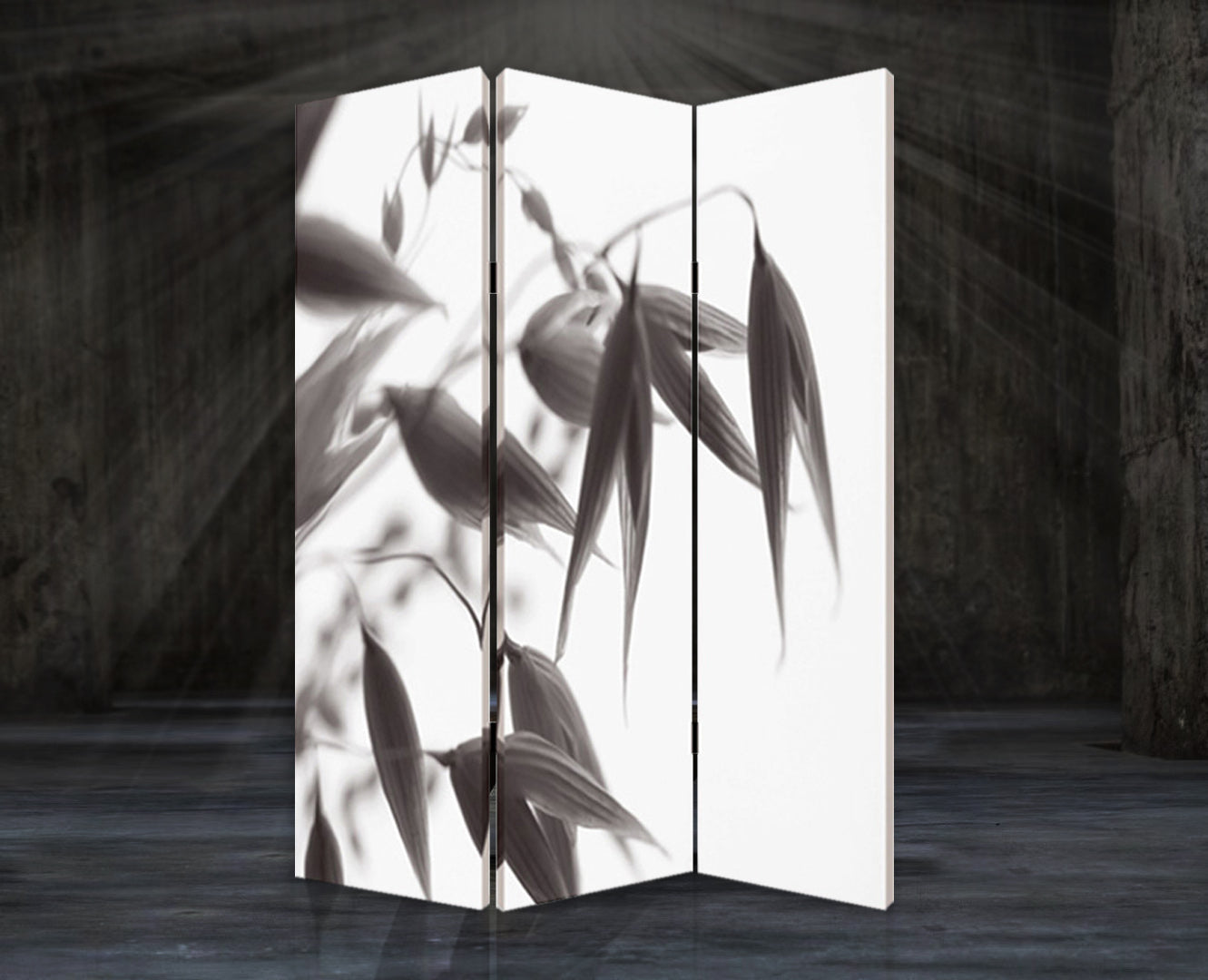 This is a 3 panel screen printed on canvas. The screen is two sided with different and complementary images on each side. It is light weight and very easy to move. The screen also has inspirational wall décor applications. This is a 3 panel screen printed on canvas. The screen is two sided with different and complementary images on each side. It is light weight and very easy to move. The screen also has inspirational wall décor applications.