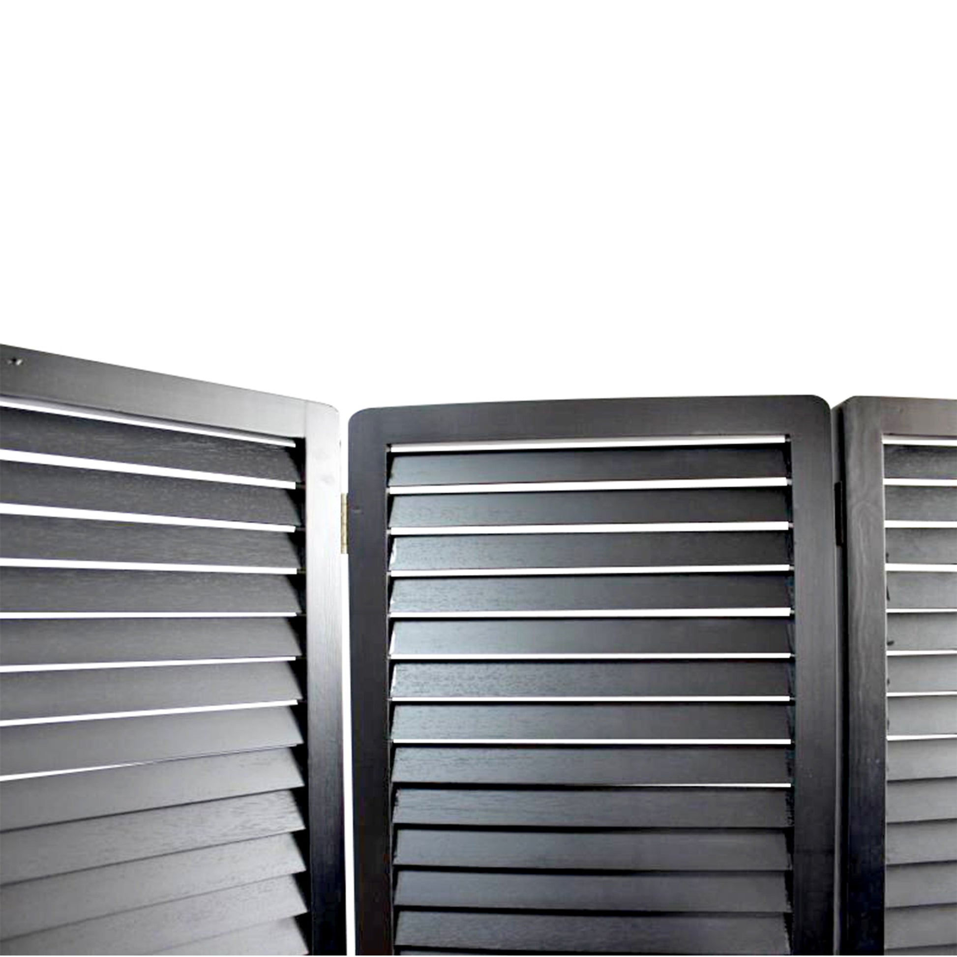 This is Black Wood Frame with carboined bamboo shutter 3 Panel Floor Screen; It's finished the same on both sides and can be used at any setting.