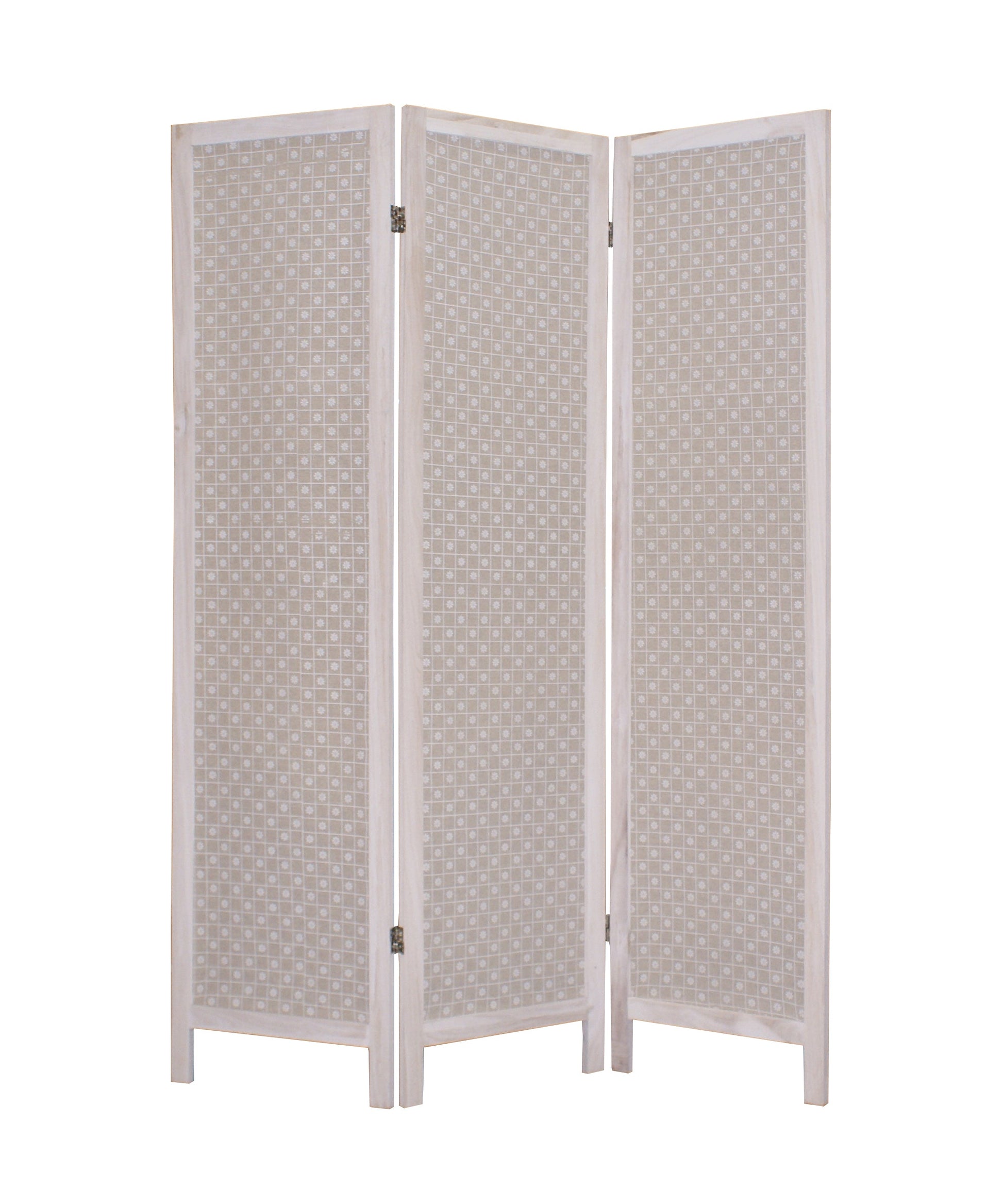 This is a 3 panel fabric screen with Paulownia wooden frame. Finished on both side. This beautiful screen will unpretentiously fit any setting! This is a 3 panel fabric screen with wooden frame. Finished on both side. This beautiful screen will unpretentiously fit any setting!