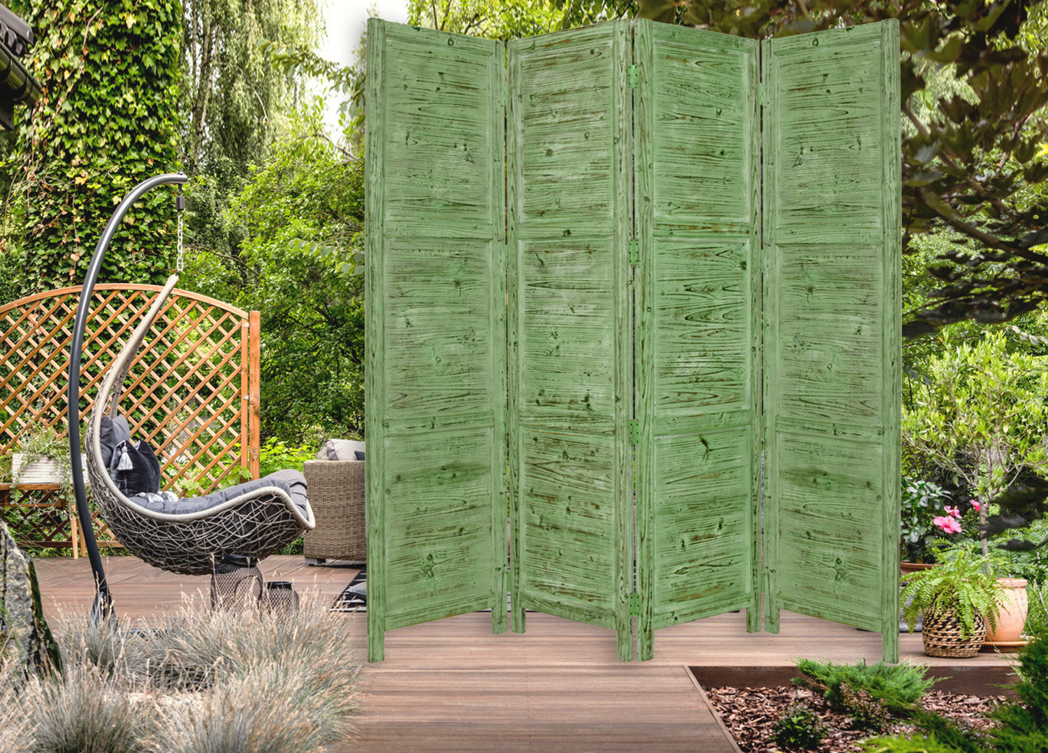 Nantucket 4 Panel Floor Screen has a frame and panels of solid cedar wood that is stained in a washed soft green. This handmade Floor Screen is finished on both sides Nantucket 4 Panel Floor Screen has a frame and panels of solid cedar wood that is stained in a washed soft green. This handmade Floor Screen is finished on both sides