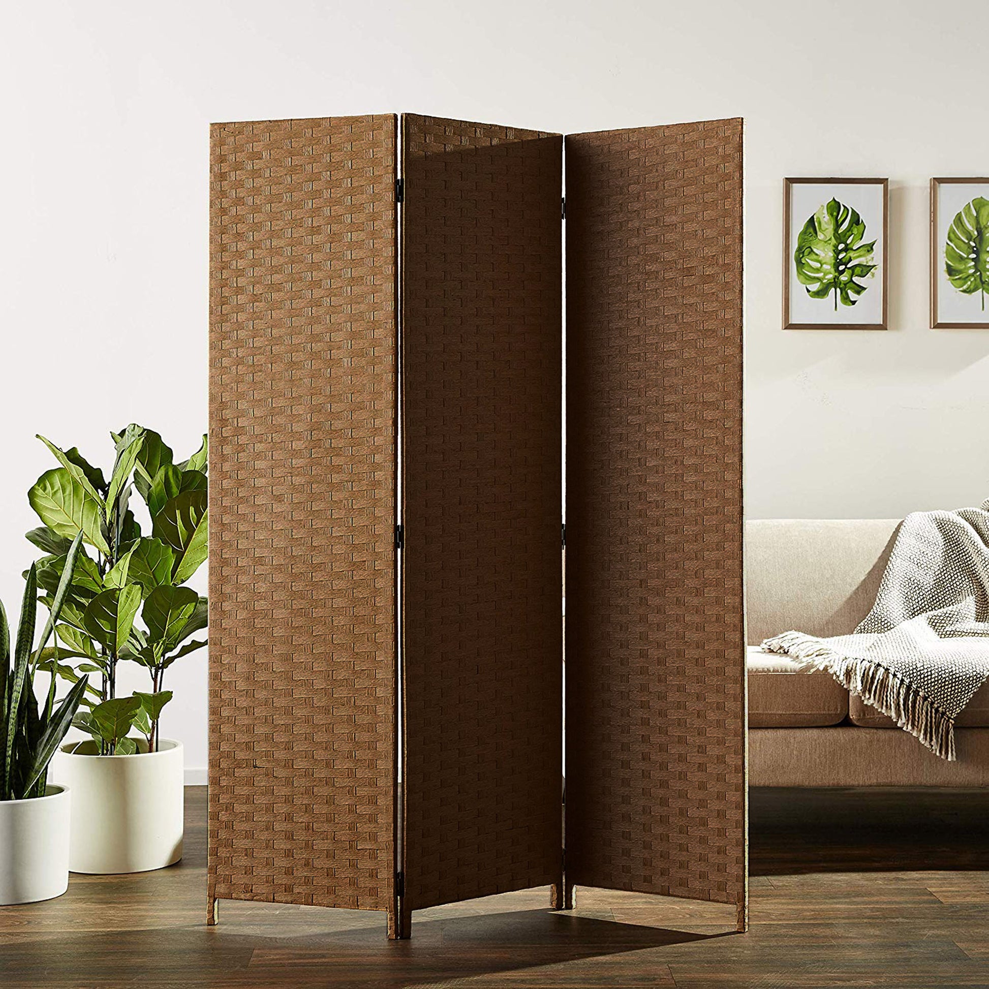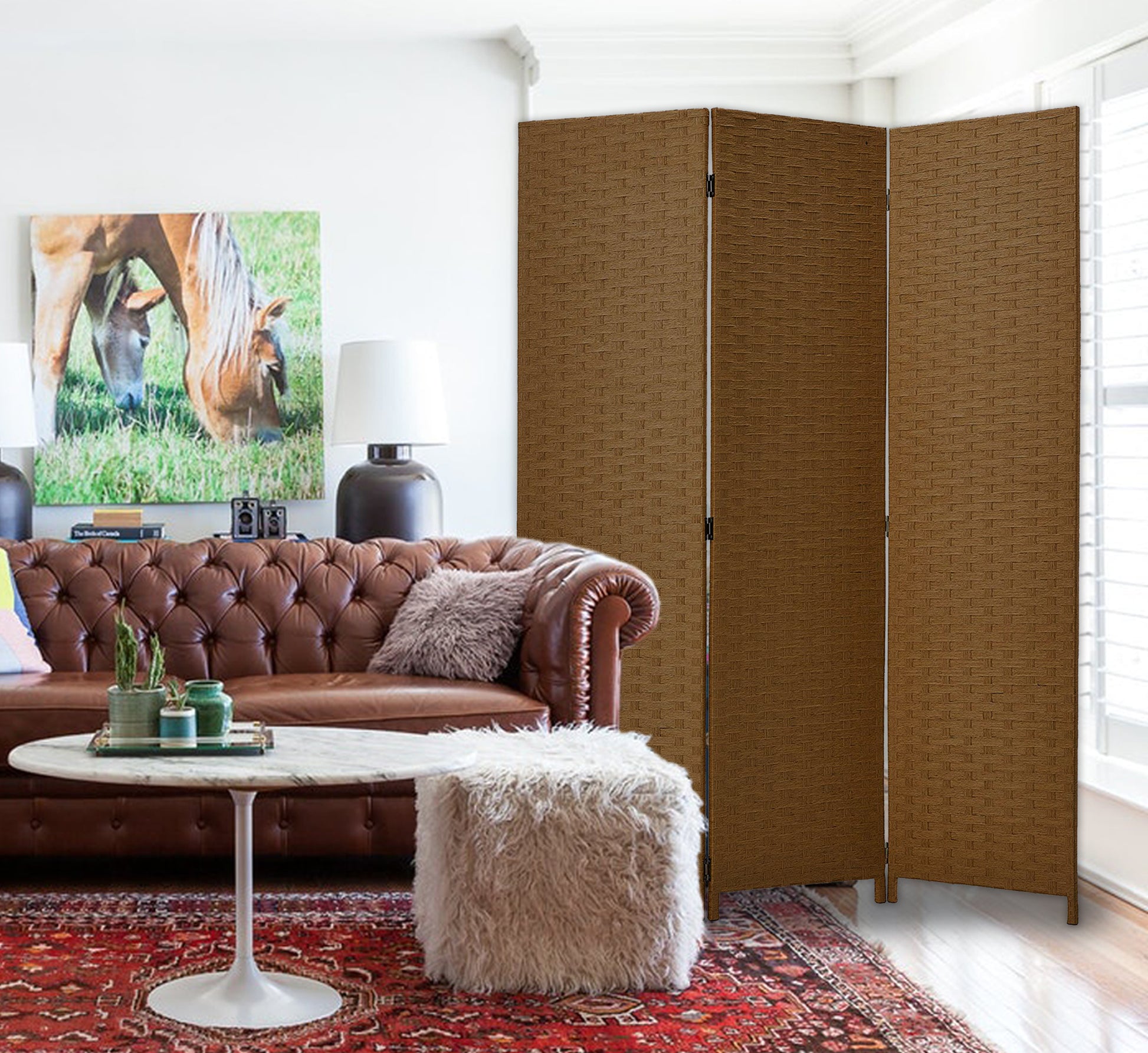 3 Panel Screen is made of soft wood fibers strands woven in a basket weave. This handmade screen is finished on both sides. 3 Panel Screen is made of soft wood fibers strands woven in a basket weave. This handmade screen is finished on both sides.