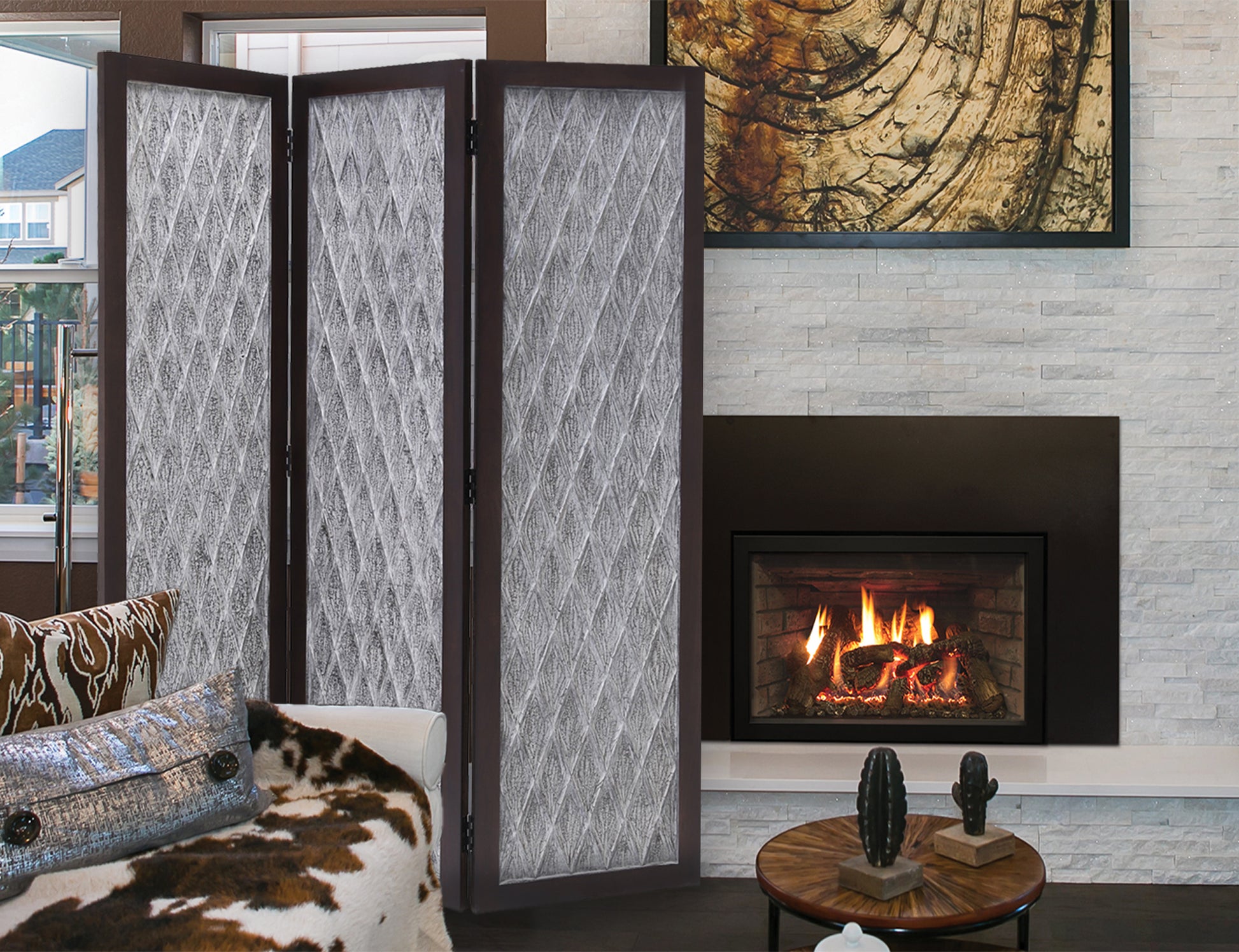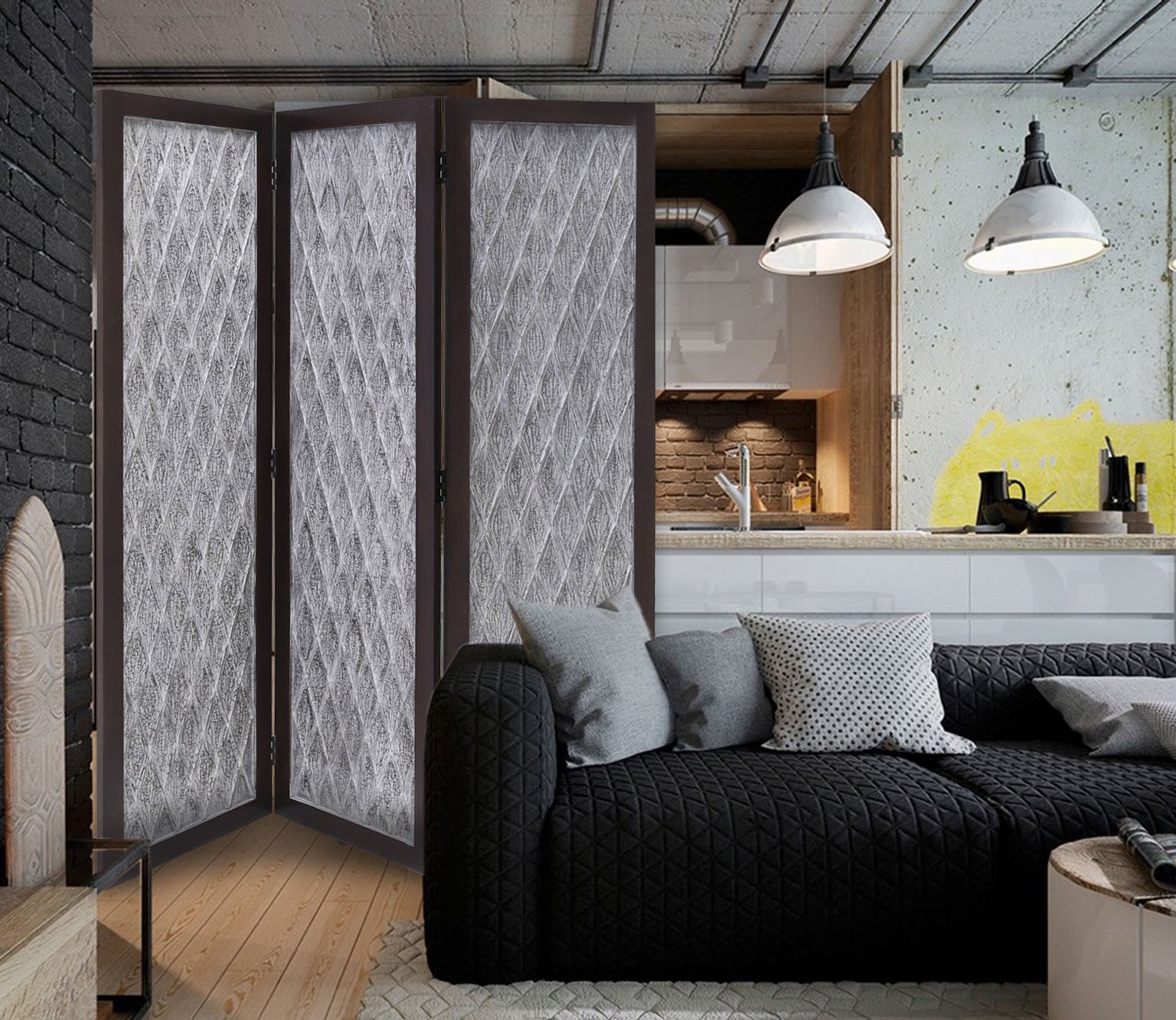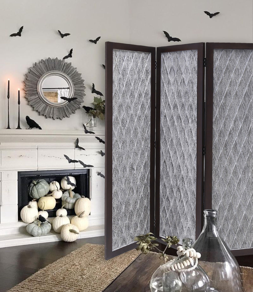 Screen Gems Santa Clara Screen SG-339 is a beautiful hand-crafted room divider. Each panel is hand carved around a mango wood frame with finish on both sides. A perfect way to break up a room, divide an open plan space and a stylish way to hide clutter.