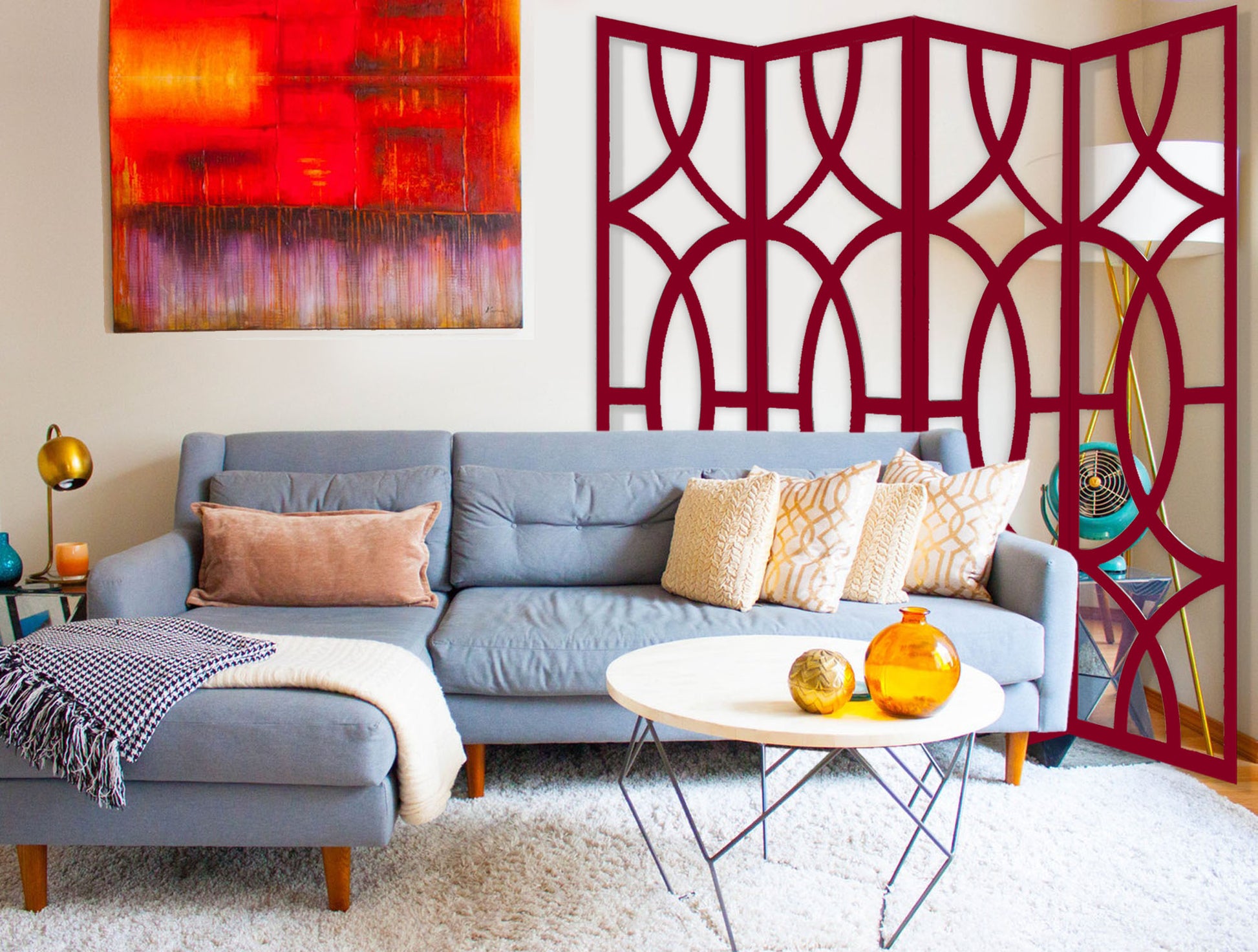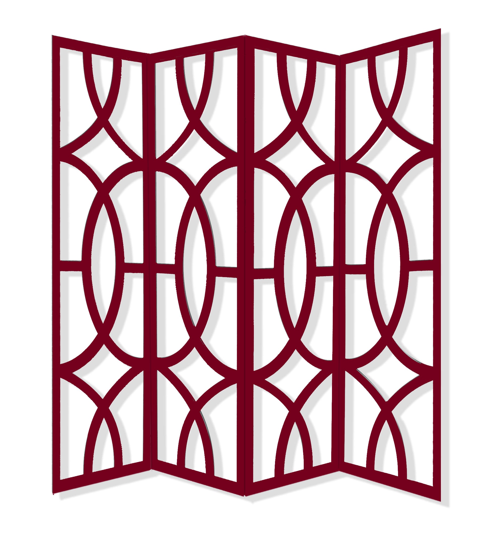 Screen Gems Savoy Screen showcases an abstraction and contemporary design in Ox Blood Red finish for texture and versatility. It is an elegantly designed 84" by 84"screen 4panel screen.. It is a perfect home accent piece for contemporary setting. The detailed cuts and polished look of this room divider can enhance the beauty of any room in your home.