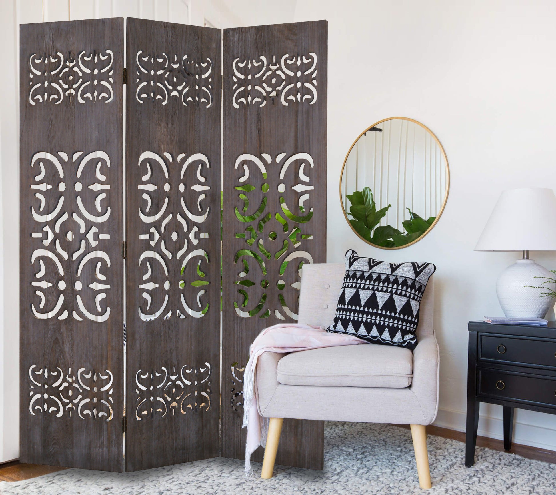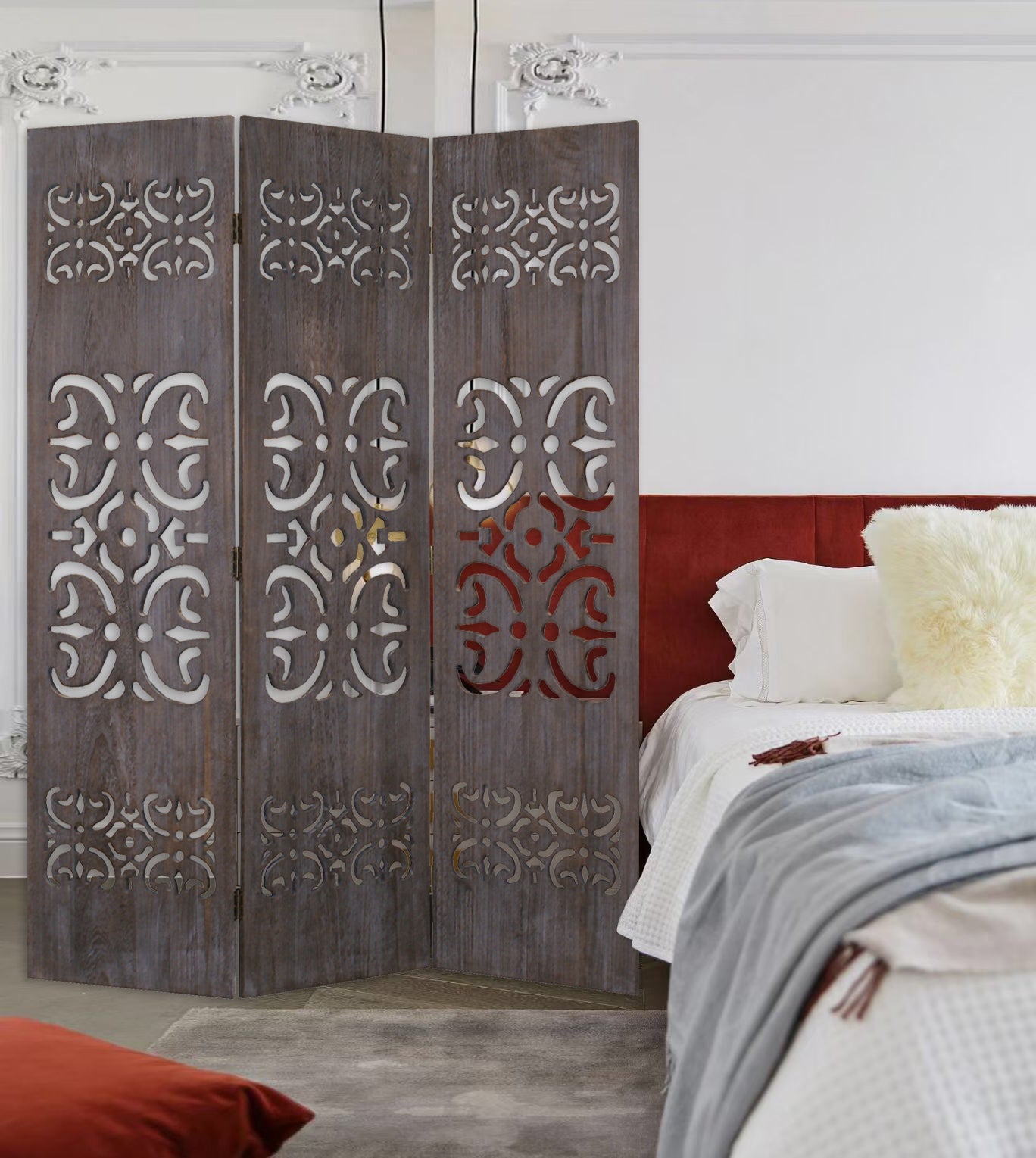 This is a 3 panel woonen carved screen. Finished on both side. This beautiful screen will unpretentiously fit any setting!