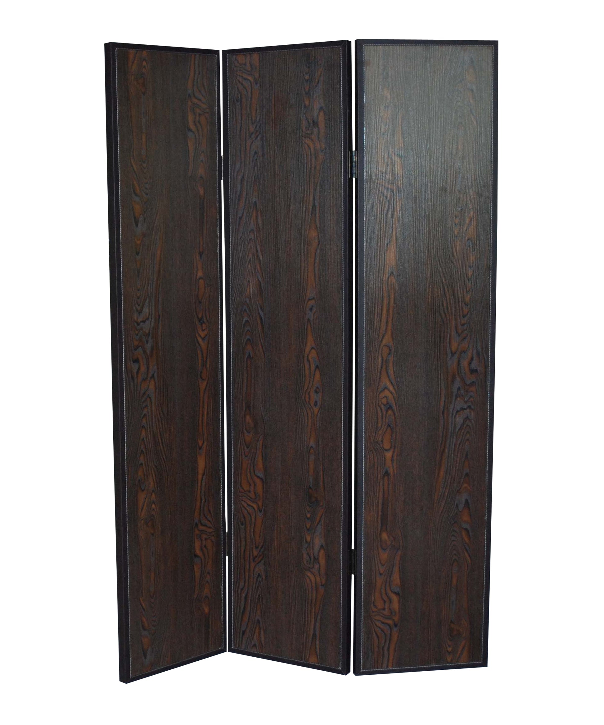 The Sonoma Screen is an exquisitely crafted, transitional 3-panel room divider fininshed on both sides. Each wood panel is embellished with dark brown mahogany surfaces and accented with dark brown bonded leather trim.