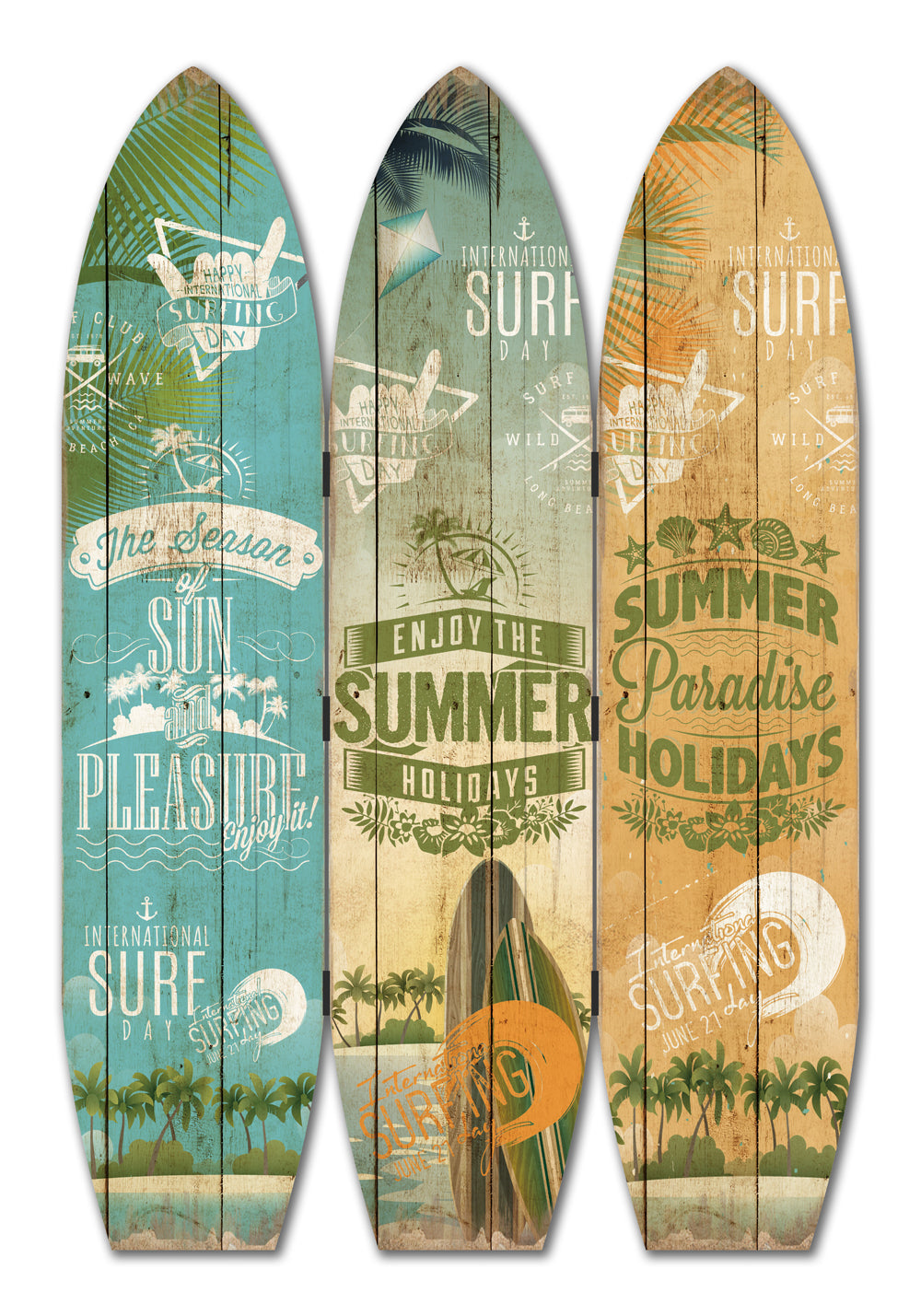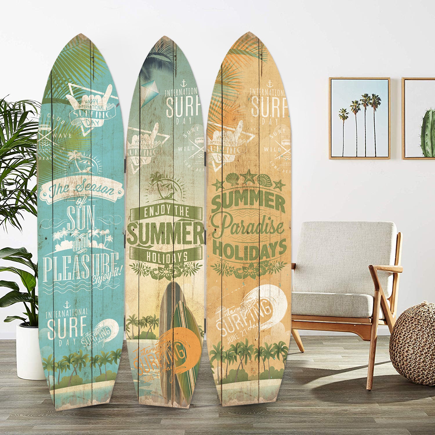 Screen Gems Surfboard Summer Screen SG-301, Live the coastal lifestyle with your very own screen shaped into three 3 surfboards hinged together. The same image is on both sides for your design options.