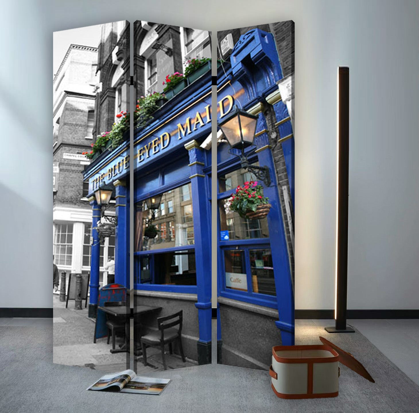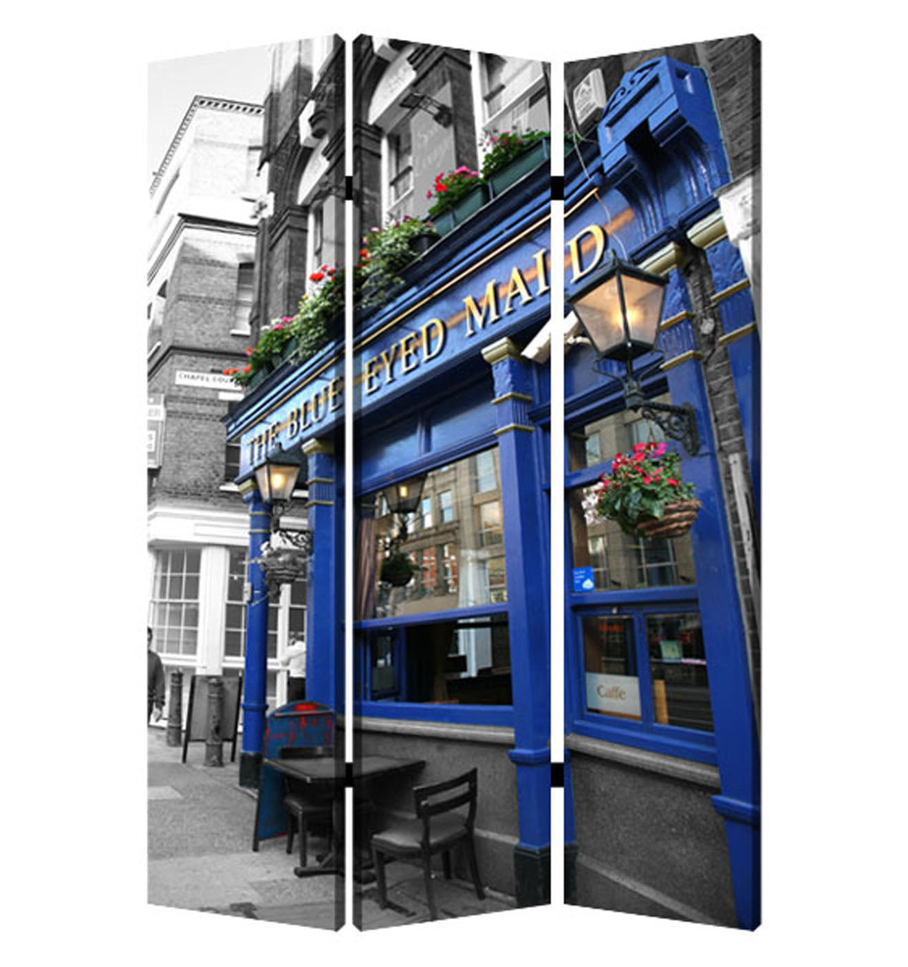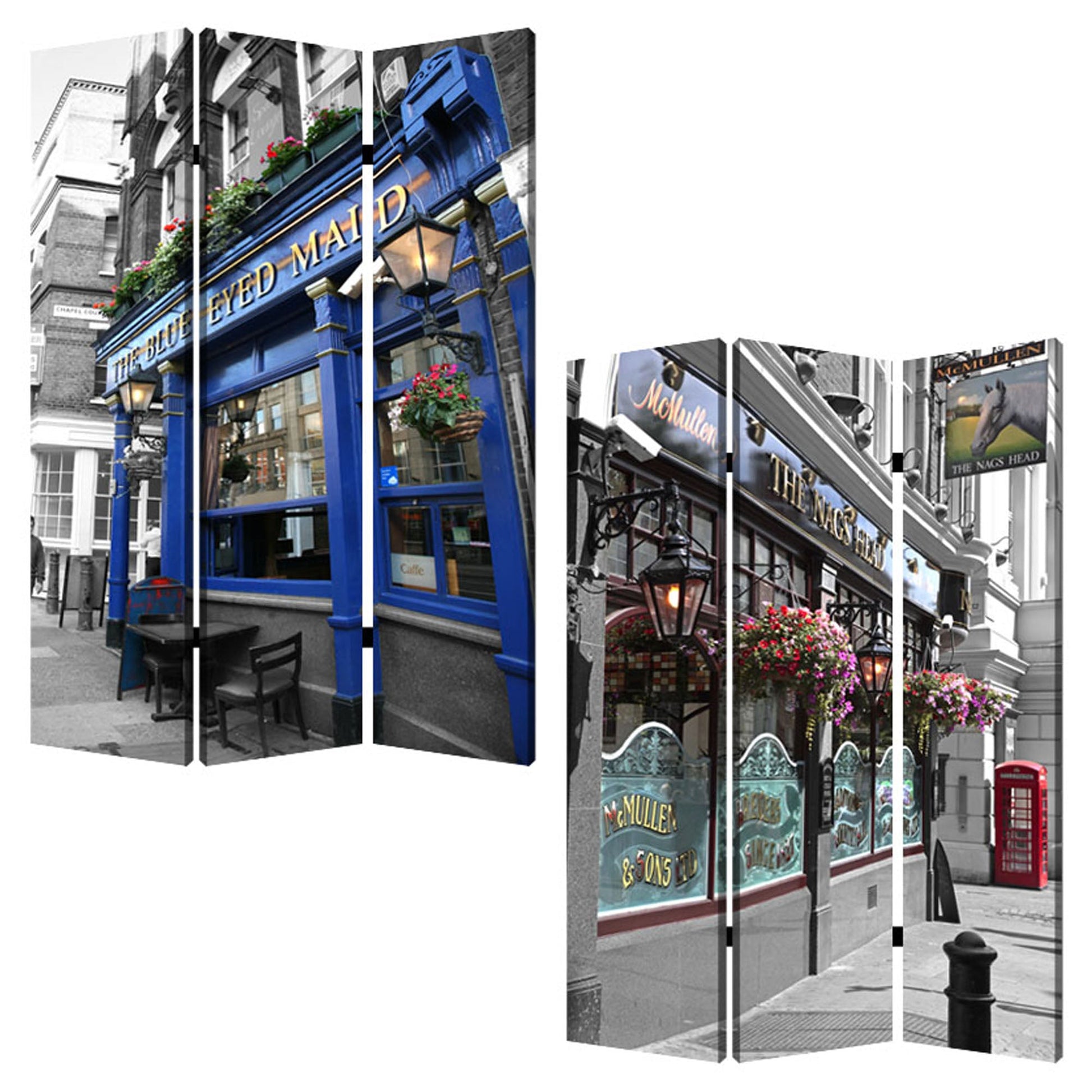 This is a 3 panel screen printed on canvas. The screen is two sided with different and complementary images on each side. It is light weight and very easy to move. The screen also has inspirational wall décor applications. This is a 3 panel screen printed on canvas. The screen is two sided with different and complementary images on each side. It is light weight and very easy to move. The screen also has inspirational wall décor applications.