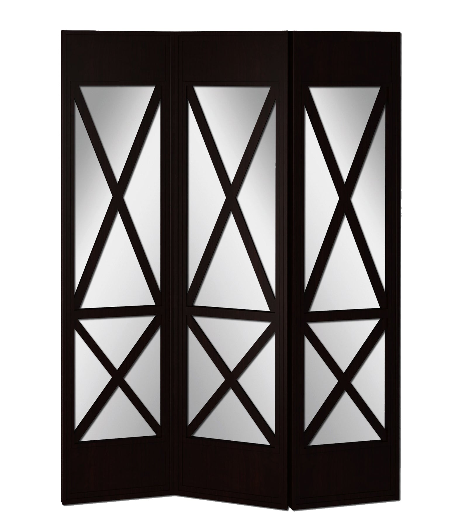 Screen Gems Transverse Screen showcases a block and cross design in an black finish for texture and versatility. It is an elegantly designed 7ft tall 3panel mirrored screen. It's mirrored panels double up in its functionality by providing reflection and giving the illusion of a larger space. It is a perfect home accent piece for contemporary setting. The detailed cuts and polished look of this room divider can enhance the beauty of any room in your home.