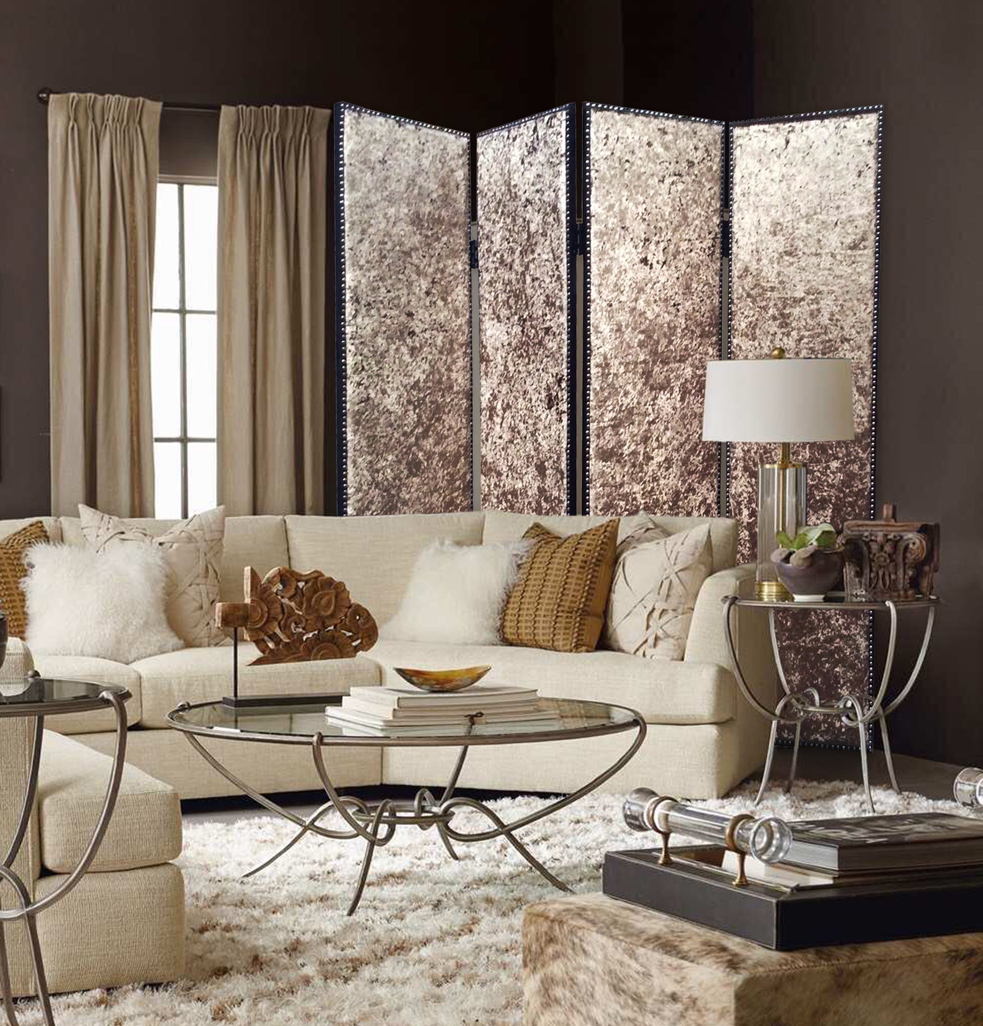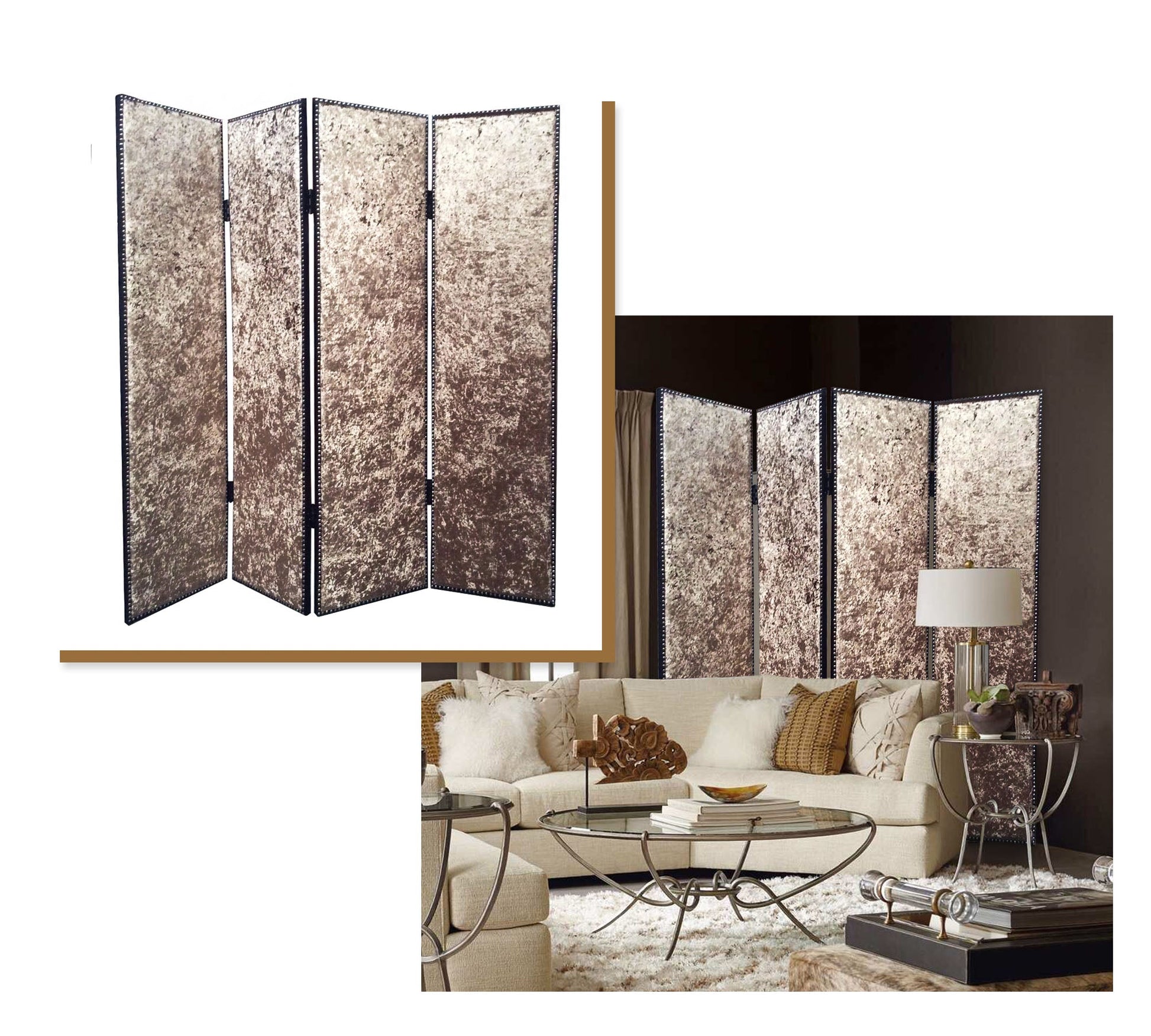 - Each panel is stylishly designed and finished with high quality of fabric, Screen is trimmed in antique brass nail heads