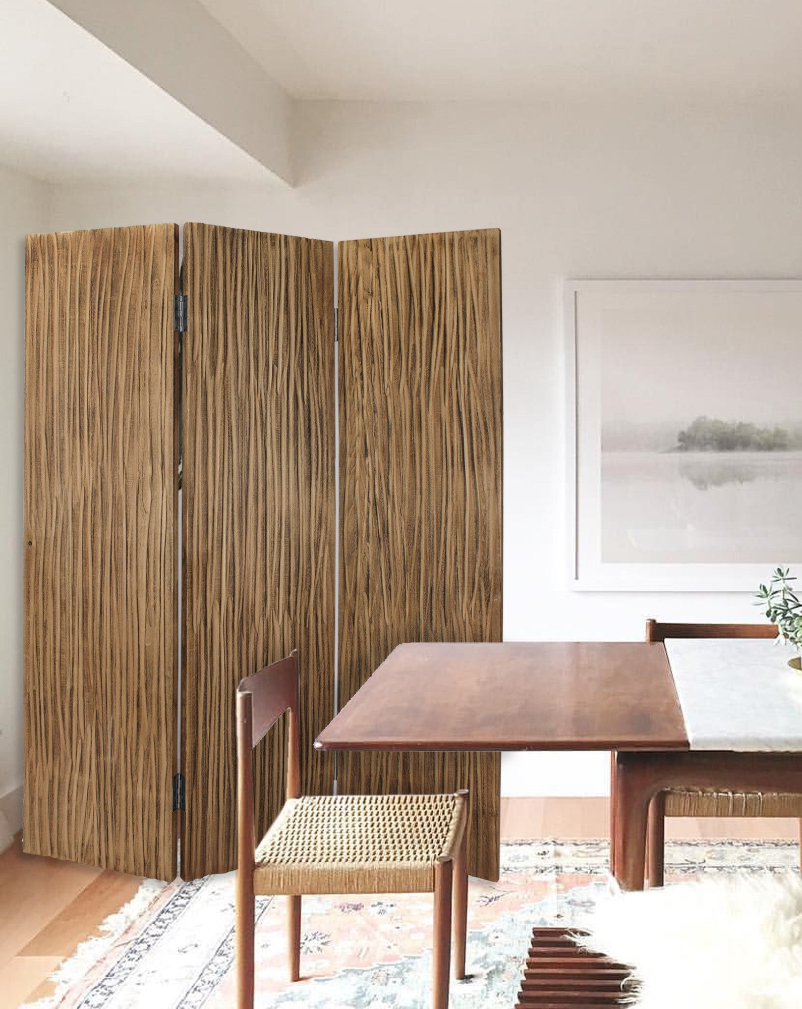 Screen Gems Woodland Screen SG-328 this 6 ft 3 panel screen is designed with a natural wood finish. This room divider will bring in a unique touch of nature to your home décor. Both contemporary and transitional, perfectly fitting for a multitude of settings.