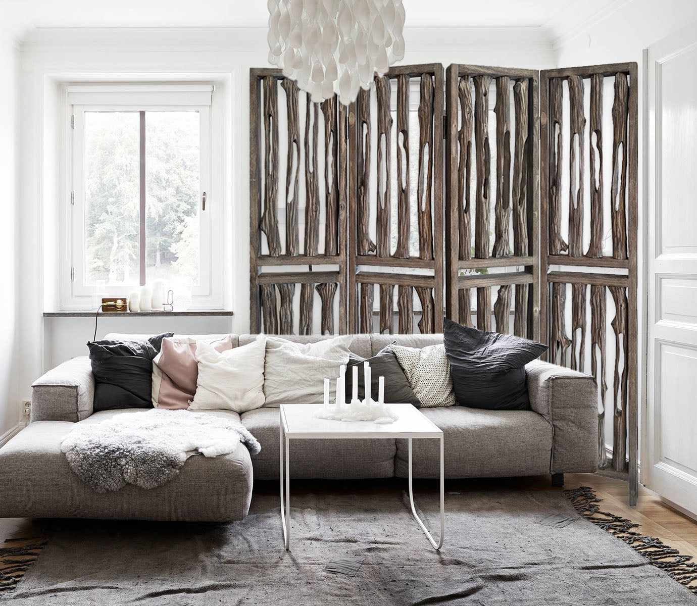 Screen Gems Wrightwood Screen SG-312A, this 7ft 4 panel screen is designed with a natural wood finish. Each panel is hand-crafted with uniquely cut wood branches. Part practical and part art piece, this room divider will bring in a unique touch of nature to your home décor. Both contemporary and transitional, perfectly fitting for a multitude of settings.