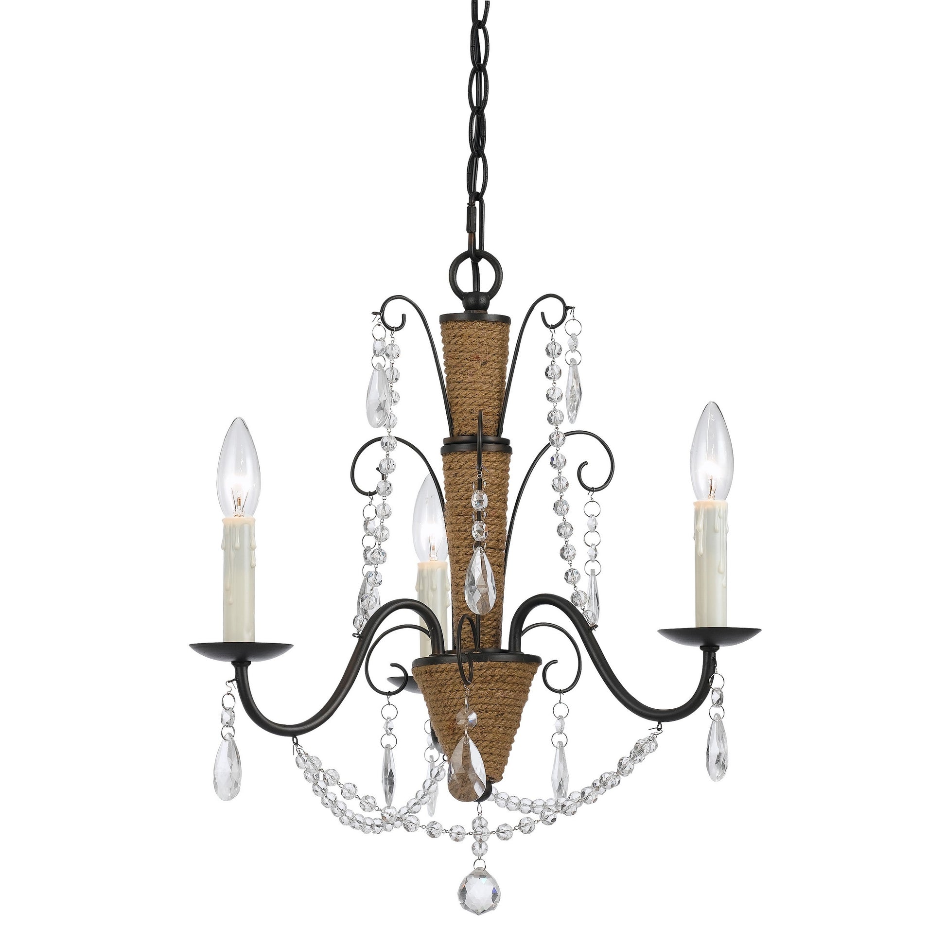 Add a distinct look to your modern home with the inclusion of this sturdy metal constructed chandelier. Scrolled design frame with hanging crystals and candle design bulb holders completes the look and makes it an ideal piece. The rope wrapped in the center with 6 foot long chain makes it a piece worth addition.