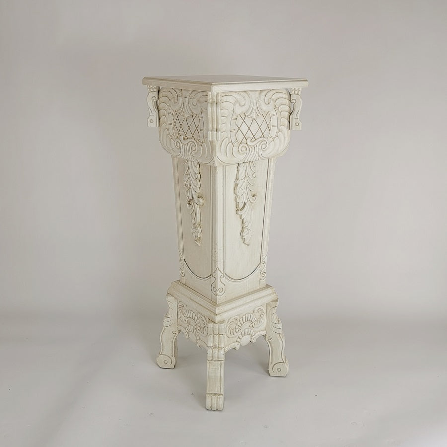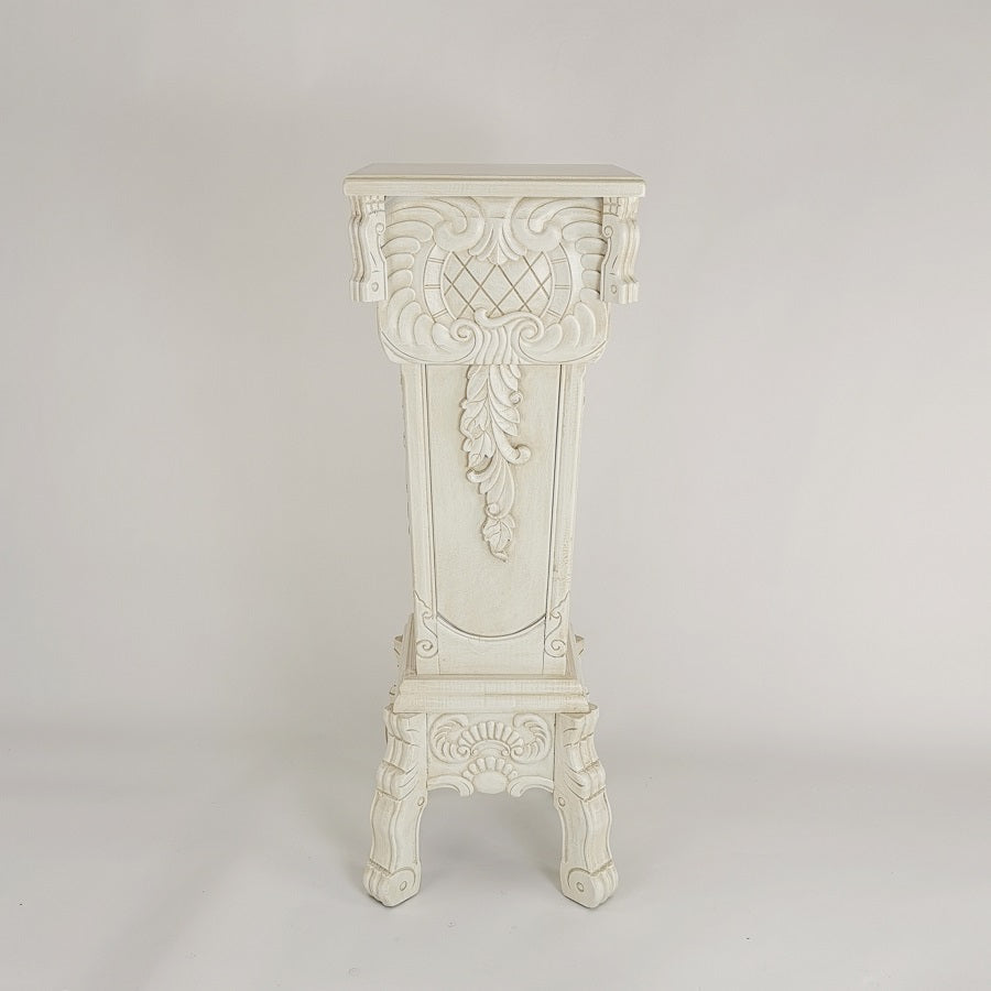 Wonderfully carved pedestal will bring a touch of elegance to any room it is placed in. Perch your unique decorative items or a beautiful floral arrangement on top of this sturdy wooden pedestal. The delightful piece can bring a stylish worldly feel to your living room, family room or home office.