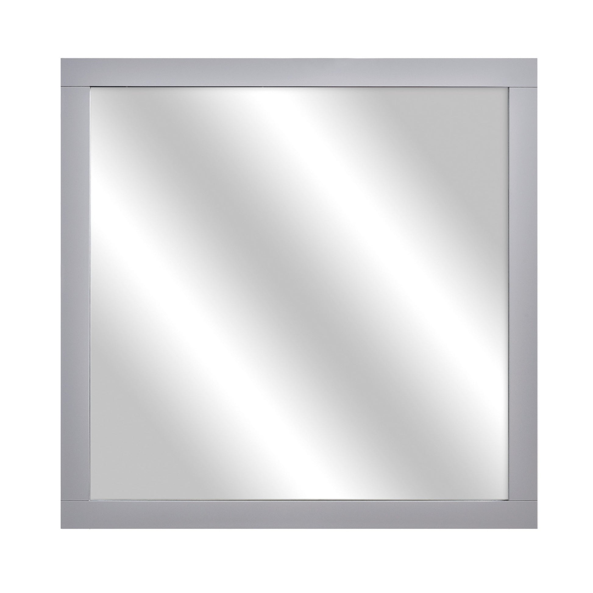 Square Shape Wooden Frame Mirror With Mounting Hardware Gray And Silver
