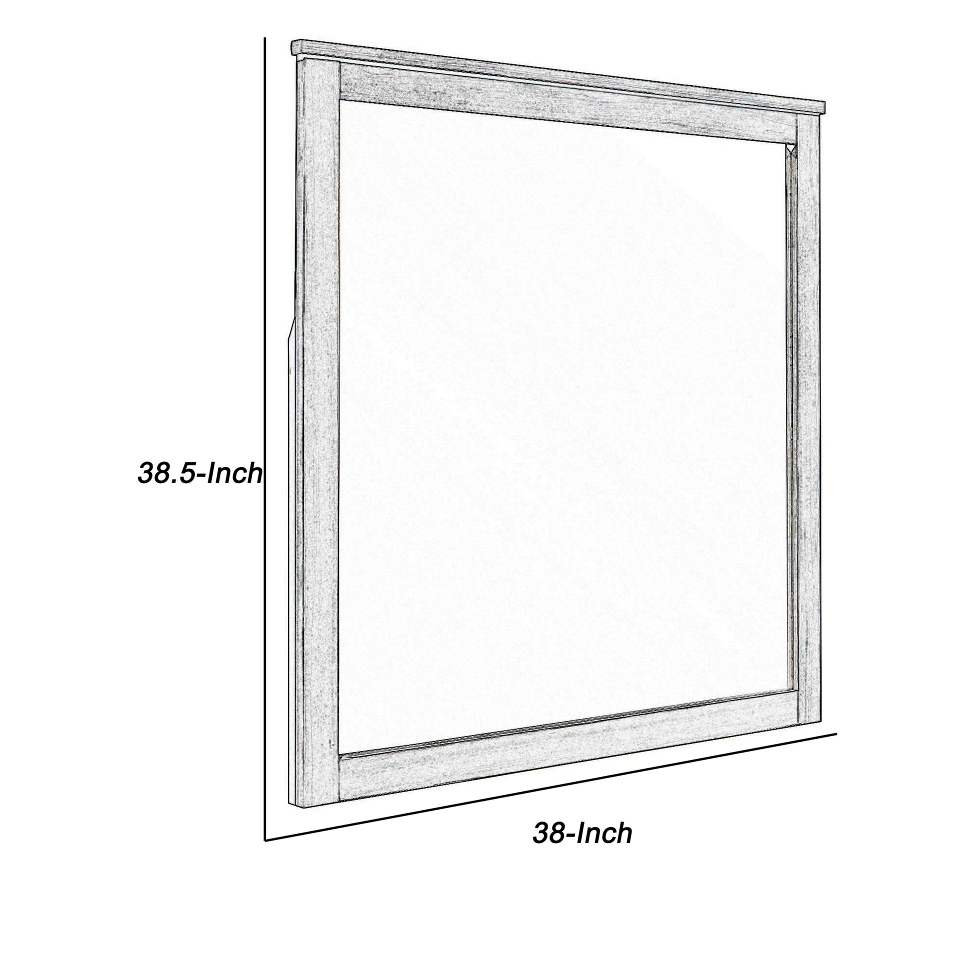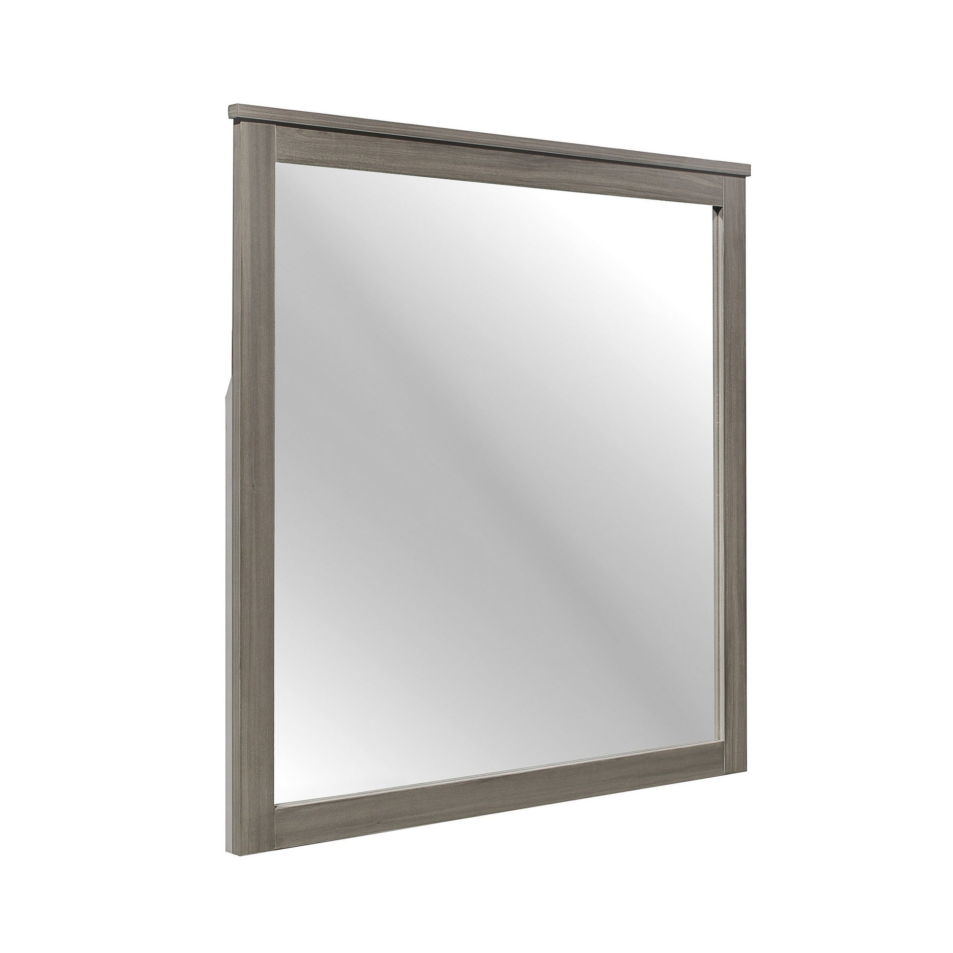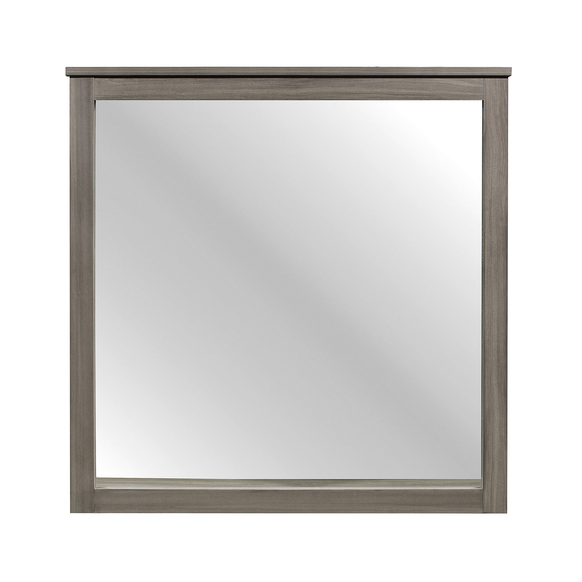 Glorify your home decor with the addition of this transitional style Mirror, constructed sturdily from solid wood, veneer and engineered wood in dark gray finish. It features a square frame with grain details also resists scratches and stains that imparts an appealing character to it. The wall mounting hardware on the back offers effortless installation.